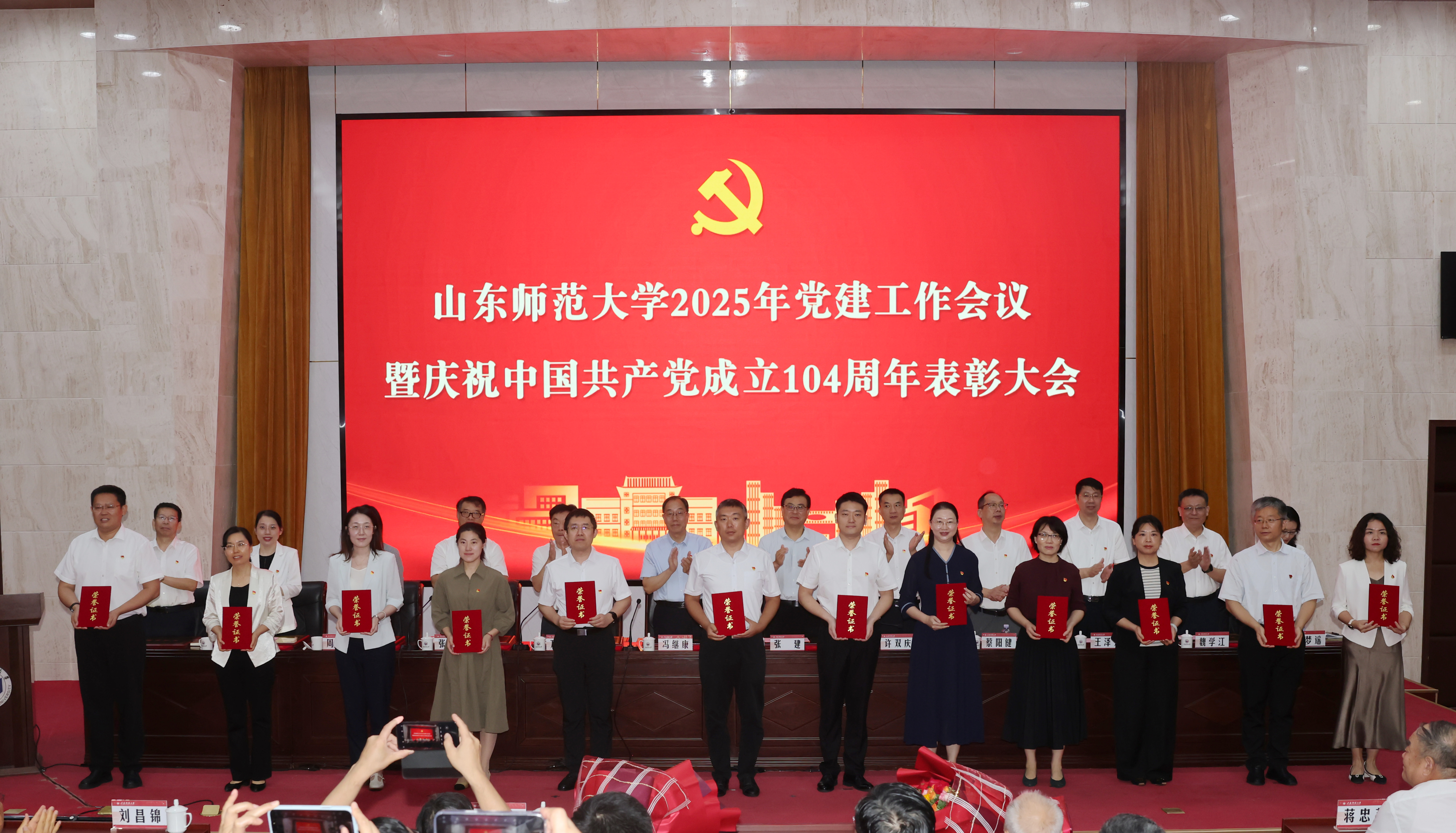 7月1日上午,学校2025年党建工作会议暨庆祝中国共产党成立104周年表彰大会在千佛山校区教学三楼报告厅举行。会上,对2025年获评的优秀共产党员、优秀党务工作者、先进基层党组织等进行了表彰。齐鲁文化研究院党委获评先进基层党组织,吕文明、葛沈荷获评“优秀共产党员”荣誉称号,李莉获评“优秀党务工作者”荣誉称号。