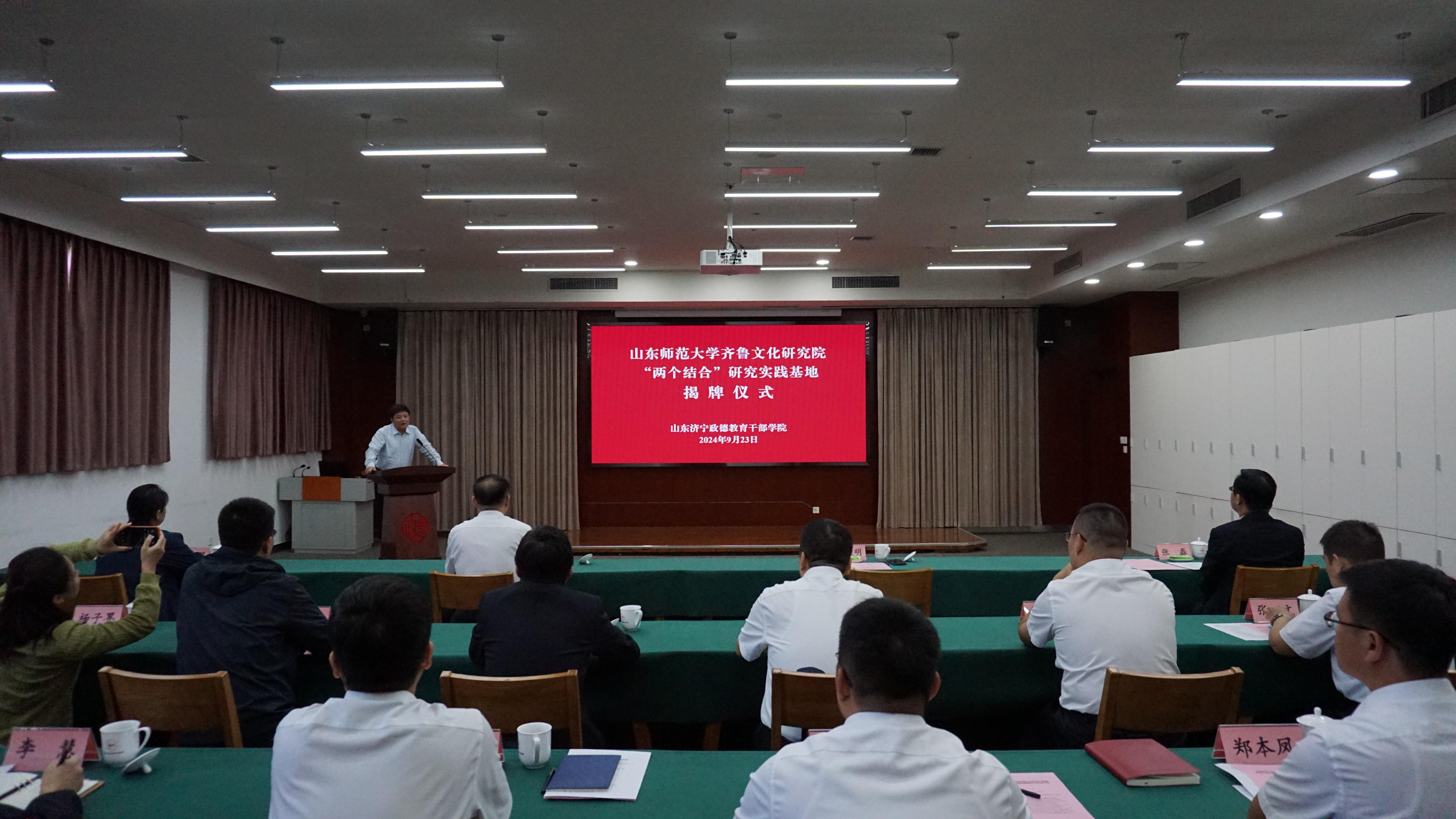 9月23日上午,山东师范大学齐鲁文化研究院与山东济宁政德教育干部学院签约揭牌仪式在山东曲阜举行,齐鲁文化研究院院长吕文明、山东济宁政德教育干部学院院长白占德共同为“山东师范大学齐鲁文化研究院‘两个结合’研究实践基地”揭牌。齐鲁文化研究院副院长张磊、李莉,以及双方有关同志出席揭牌仪式。揭牌仪式由山东济宁政德教育干部学院副院长刘志桥主持。