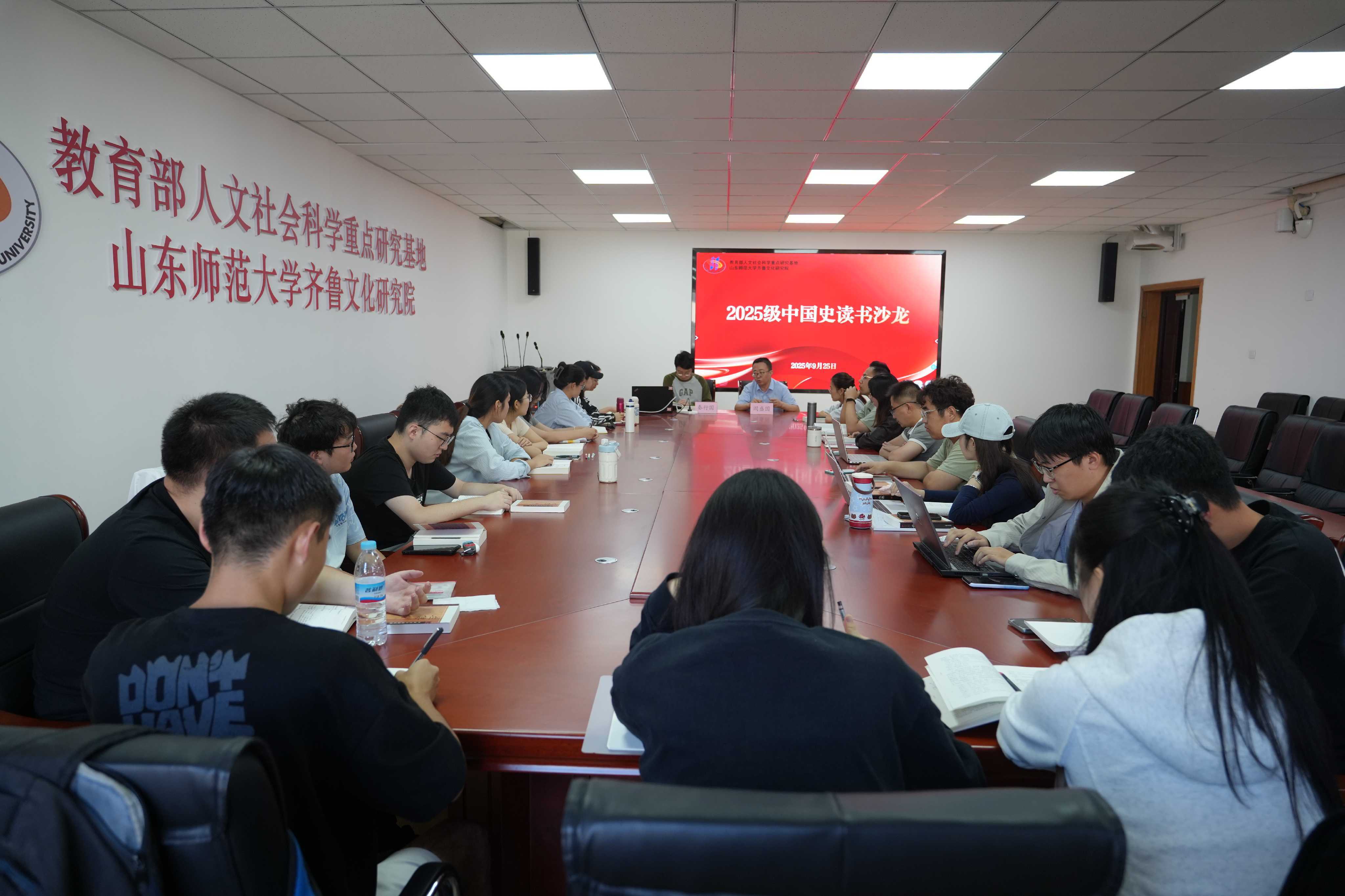 9月25日下午,齐鲁文化研究院2025级中国史读书沙龙启动仪式,在千佛山校区逸夫楼413会议室举行。本次活动由齐鲁文化研究院中国史教研室主任阎盛国教授主持,部分青年教师与2025级中国史专业学生参加。