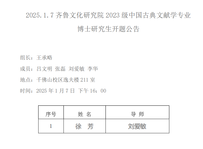 2025.1.6齐鲁文化研究院2023级中国哲学专业硕士研究生开题公告