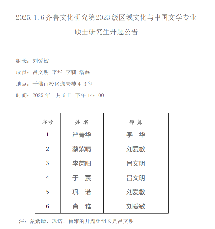 2025.1.7齐鲁文化研究院2023级中国史专业硕士研究生开题公告