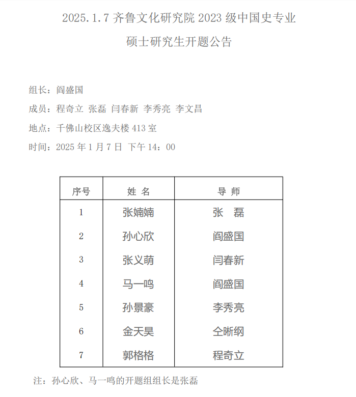 2025.1.6齐鲁文化研究院2023级区域文化与中国文学专业硕士研究生开题公告