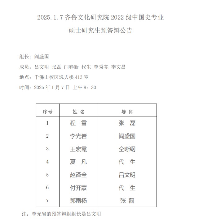 2025.1.6齐鲁文化研究院2022级区域文化与中国文学专业硕士研究生预答辩公告