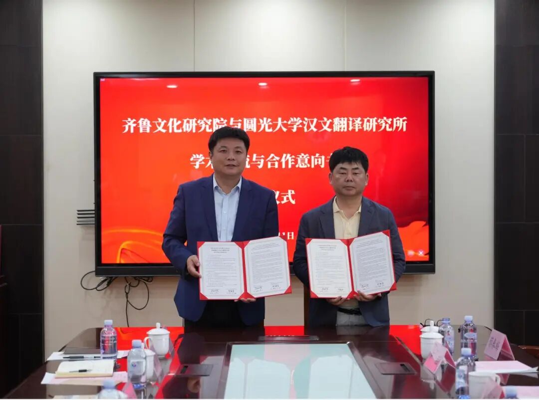 座谈会期间,齐鲁文化研究院分别与韩国圆光大学汉文翻译研究所、韩国檀国大学哲学研究所签订《学术交流与合作意向书》,就进一步开展学术交流与合作达成初步共识。