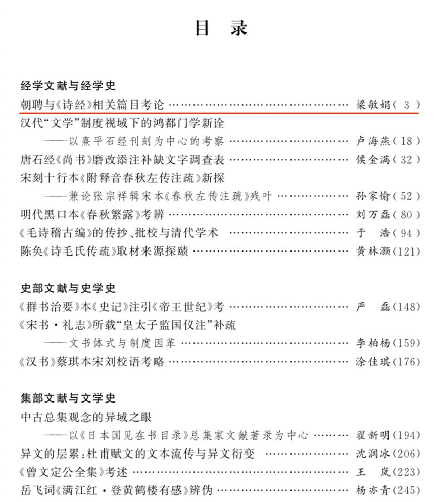 近日,《北京大学中国古文献研究中心集刊》(CSSCI集刊)第三十二辑刊发了齐鲁文化研究院青年教师梁敏娟的学术文章《朝聘与〈诗经〉相关篇目考论》。该文是山东省社会科学规划青年项目“出土文献与早期《诗经》经典化研究”(项目批准号:24DZWJ05)的阶段性成果。