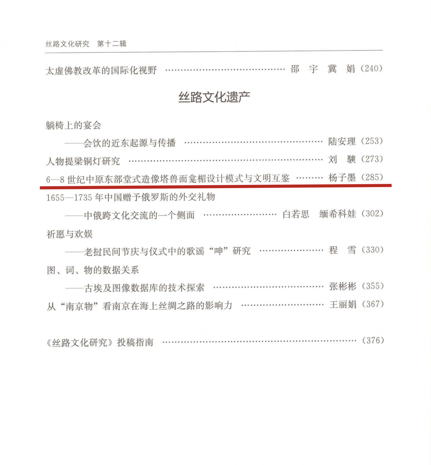 近日,《丝路文化研究》(CSSCI来源集刊)第十二辑刊发了齐鲁文化研究院副教授杨子墨的学术文章《6—8世纪中原东部堂式造像塔兽面龛楣设计模式与文明互鉴》,该文章是泰山学者工程专项经费资助课题(tstp20240508)、2024年度济南市市校融合发展战略工程项目“济南‘两河一湖’旅游文化名城建设产业学院”(JNSX2024017)的阶段性成果。