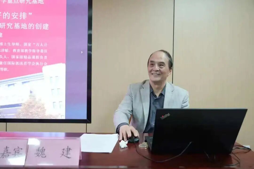 这是一场别开生面的讲座,魏建教授以个人的亲身经历深情回顾了教育部人文社会科学重点研究基地山东师范大学齐鲁文化研究院(齐鲁文化研究中心)以及中心申报基地的背景、缘起和过程。在学校的大力支持下,团队科学规划、努力推进工作,邀请了李学勤、庞朴、王志民等齐鲁文化研究的著名学者进行指导并组建高水平学术团队,全面提升齐鲁文化研究中心的建设水平,最后大家齐心协力终于申获成功,成为山东省属高校唯一一家教育部人文社会科学重点研究基地。魏建教授还充分肯定了基地近年来取得的突出成绩,指出基地作为国家级科研平台,在学校“冲一流”建设和高质量发展中发挥着重要作用。最后,魏教授和同学们分享了人生经验,勉励青年学子在未来的学术征途与人生道路上要永葆迎难而上的勇气,只有善于克服困难前进,才能取得成功。