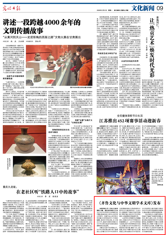 【编者按】1月29日,由教育部人文社会科学重点研究基地山东师范大学齐鲁文化研究院、商务印书馆主办,山东师范大学马克思主义学院、齐鲁文化与中华文明研究中心协办的《齐鲁文化与中华文明学术文库》新书发布暨出版座谈会在山东师范大学举行。该著作由山东师范大学齐鲁文化研究院历时三年组织编纂、商务印书馆出版,共10卷350万字,是国内首部对齐鲁文化与中华文明关系进行系统性理论阐释的标志性成果。活动吸引光明日报、中国社会科学科学报、齐鲁晚报、山东教育新闻等中央主要新闻单位、省市主流媒体报道,具体如下: