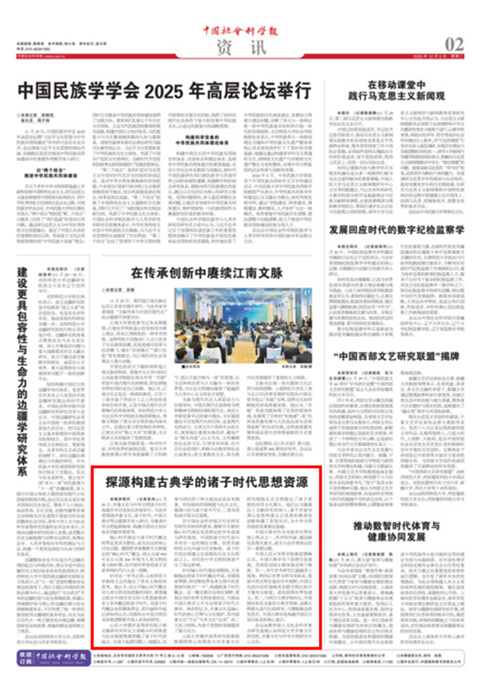 【编者按】11月30日,由教育部人文社会科学重点研究基地山东师范大学齐鲁文化研究院、齐鲁文化与中华文明研究中心主办的齐鲁文化与中华文明诸子时代高端学术对话会在济南举行。来自中国社会科学院、中国人民大学、北京师范大学、山东大学、东北师范大学、北京林业大学、浙江工商大学、中共山东省委党校(山东行政学院)、山东师范大学、曲阜师范大学、山东理工大学等高校和科研机构的专家学者共30余人参加会议。与会专家围绕齐鲁文化与中华文明诸子时代的关系、诸子时代与轴心时代、诸子时代与中华文明等议题进行了热烈讨论,认为齐鲁文化不仅为诸子思想的产生提供了丰厚的文化背景和资源,也在与诸子百家思想的互动中不断丰富、升华,最终为中华文明的繁荣发展做出突出贡献。诸子时代概念的提出,对于构建具有中国特色、中国风格、中国气派的哲学社会科学自主知识体系具有重要价值和意义。会议吸引中国社会科学报(网)、大众日报、联合日报、大众新闻客户端、齐鲁壹点等媒体报道,具体如下: