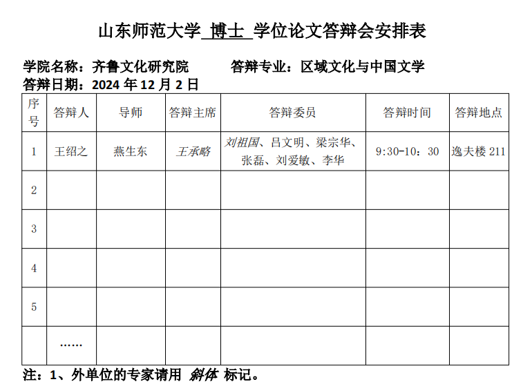 2024.12.2齐鲁文化研究院2024届中国古典文献学专业博士研究生答辩公告