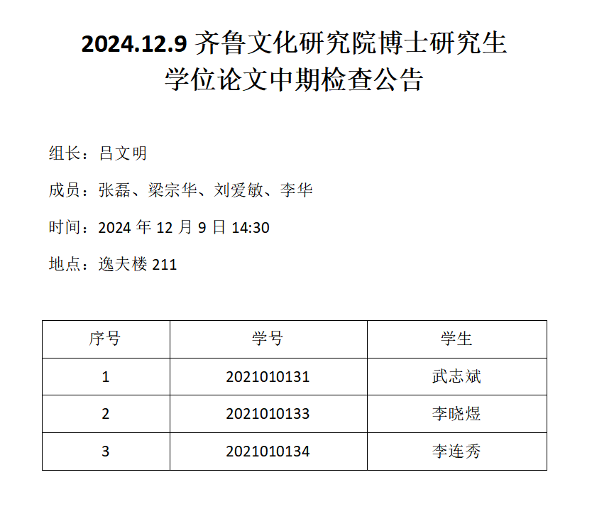 2024.12.4齐鲁文化研究院2024届中国哲学专业硕士研究生答辩公告