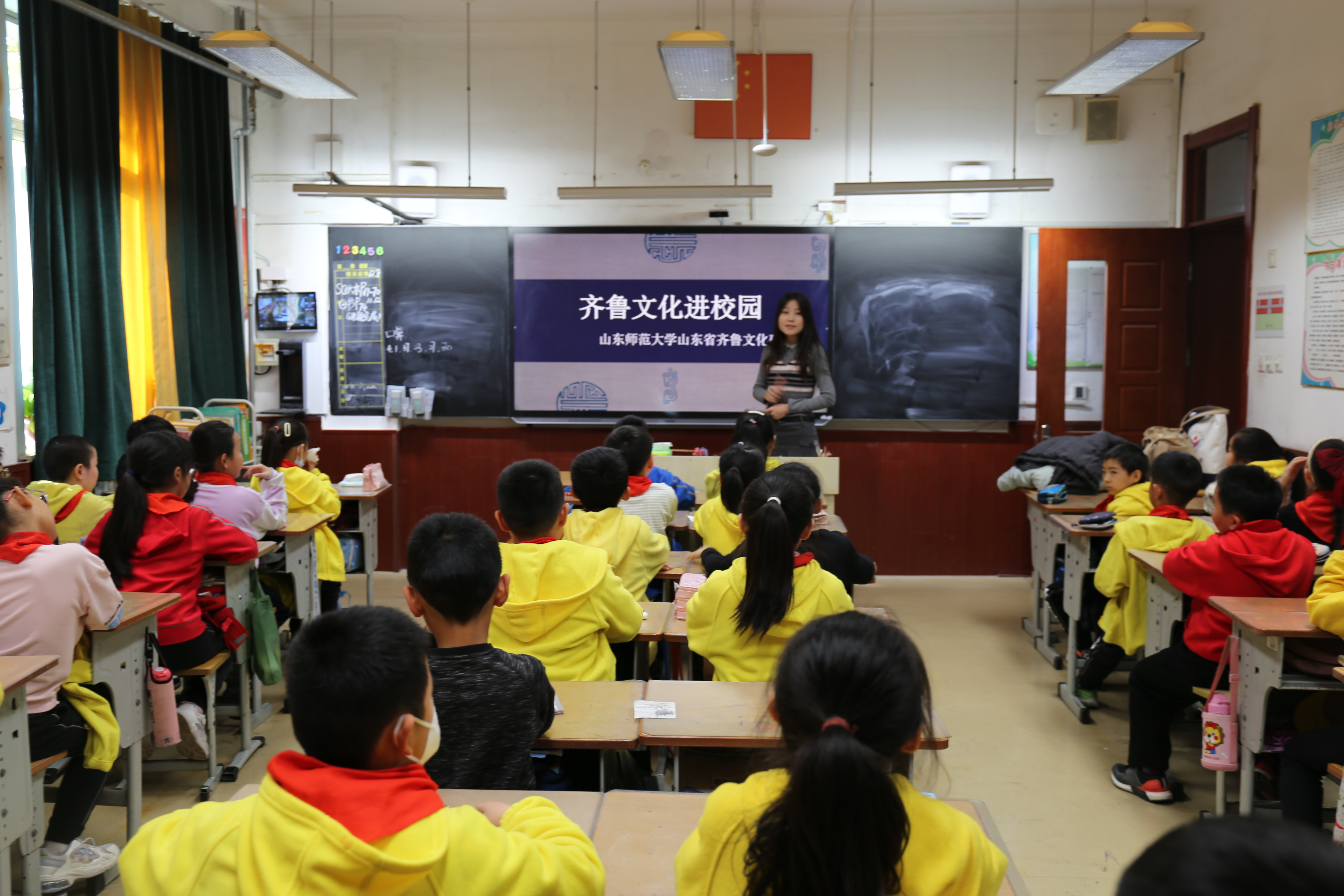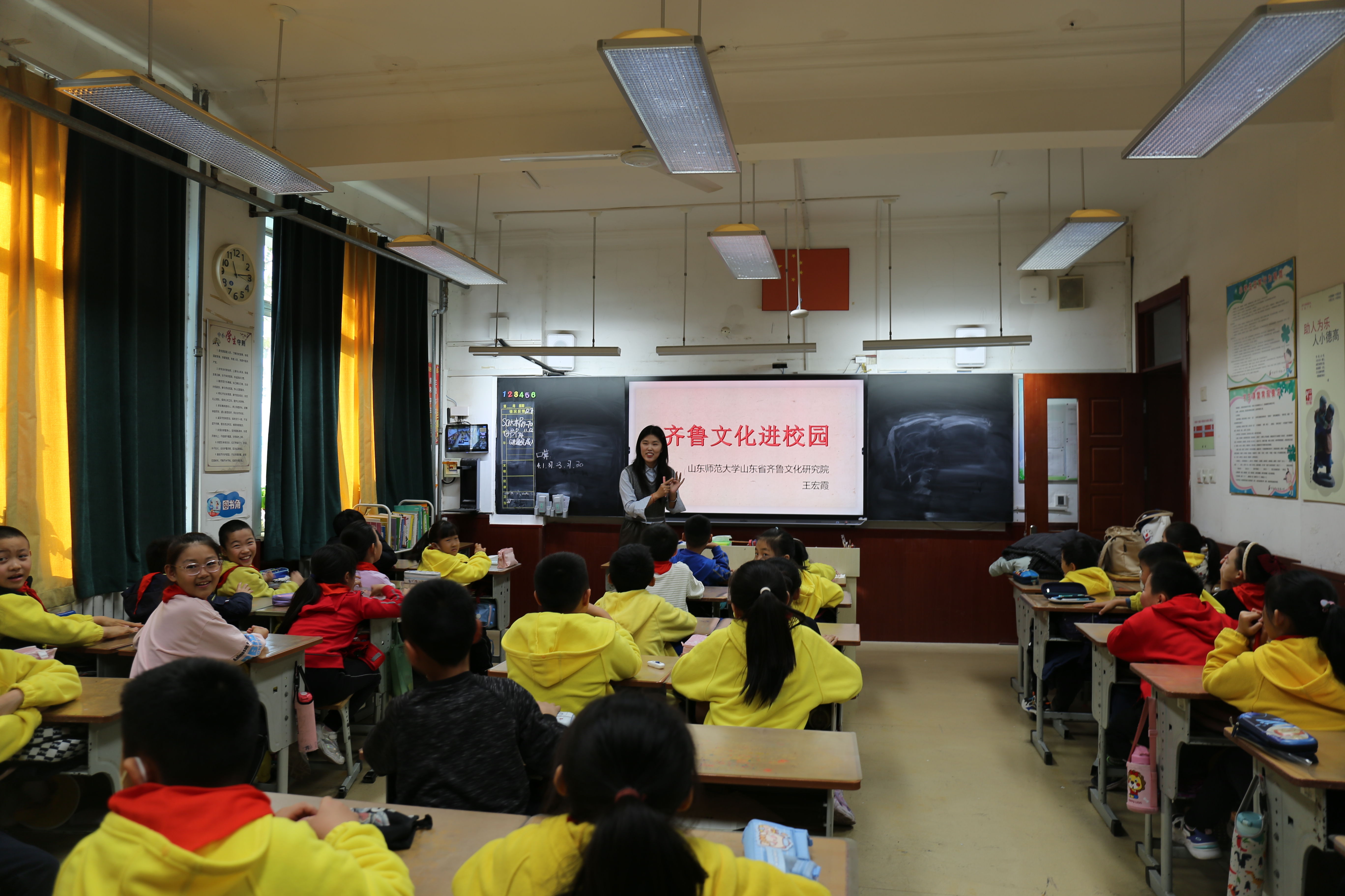 为深化党史学习教育,弘扬齐鲁文化,推动中华优秀传统文化创造性转化和创新性发展,齐鲁文化研究院开展了“齐鲁文化进校园”活动。12月8日上午,齐鲁文化研究院齐鲁文化宣讲团走进了十亩园小学。在齐鲁文化研究院团总支书记、学生工作办公室主任杜云飞老师的带领下,宣讲团成员在十亩园小学通过现场宣讲的方式,为同学们宣讲周公、辛弃疾等齐鲁文化名人的故事,让同学们近距离感受到了齐鲁文化的魅力。