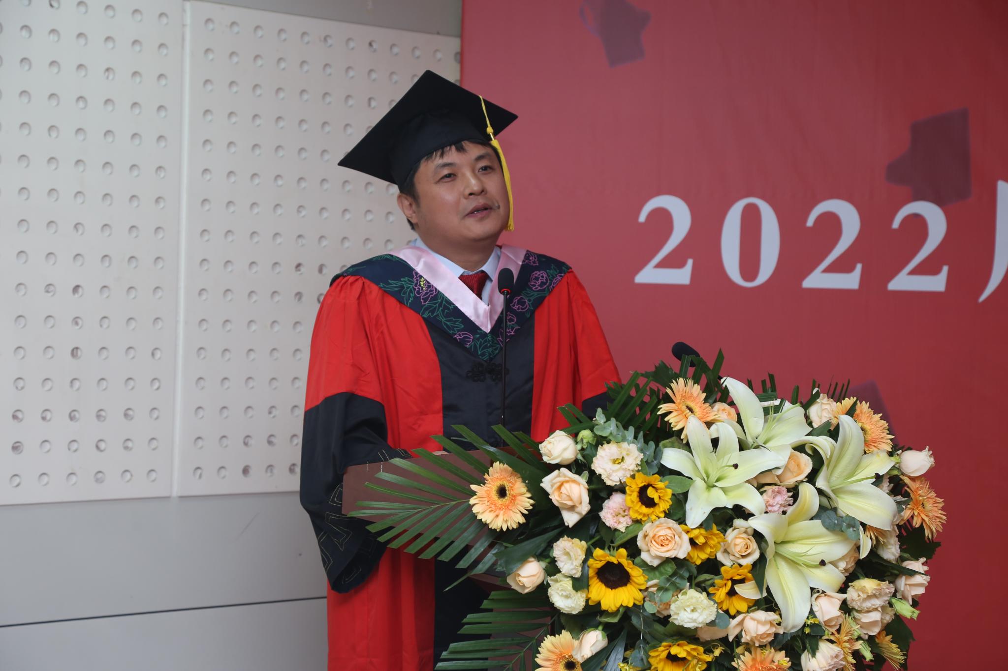 区域文化与中国文学学位点负责人刘爱敏教授代表教师在讲话中高度肯定了同学们三年来用心取得的成绩,和大家分享了中国传统文化中著名的“十六字心传”:“人心惟危,道心惟微;惟精惟一,允执厥中”。祝愿同学们在人生的新起点上,从“心”开始,做最好的自己,心有所向,眼里有光,脚下有路,未来可期!