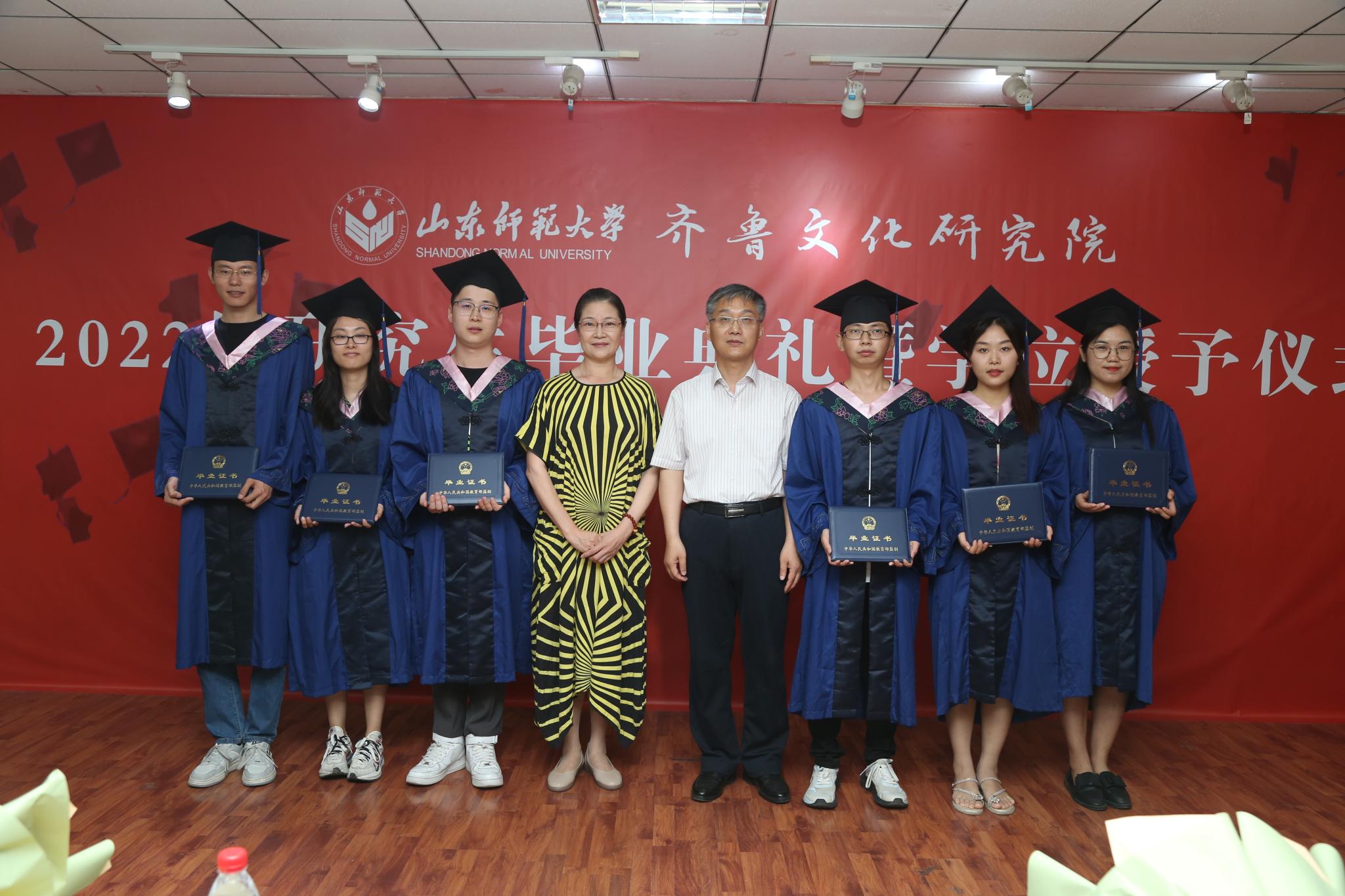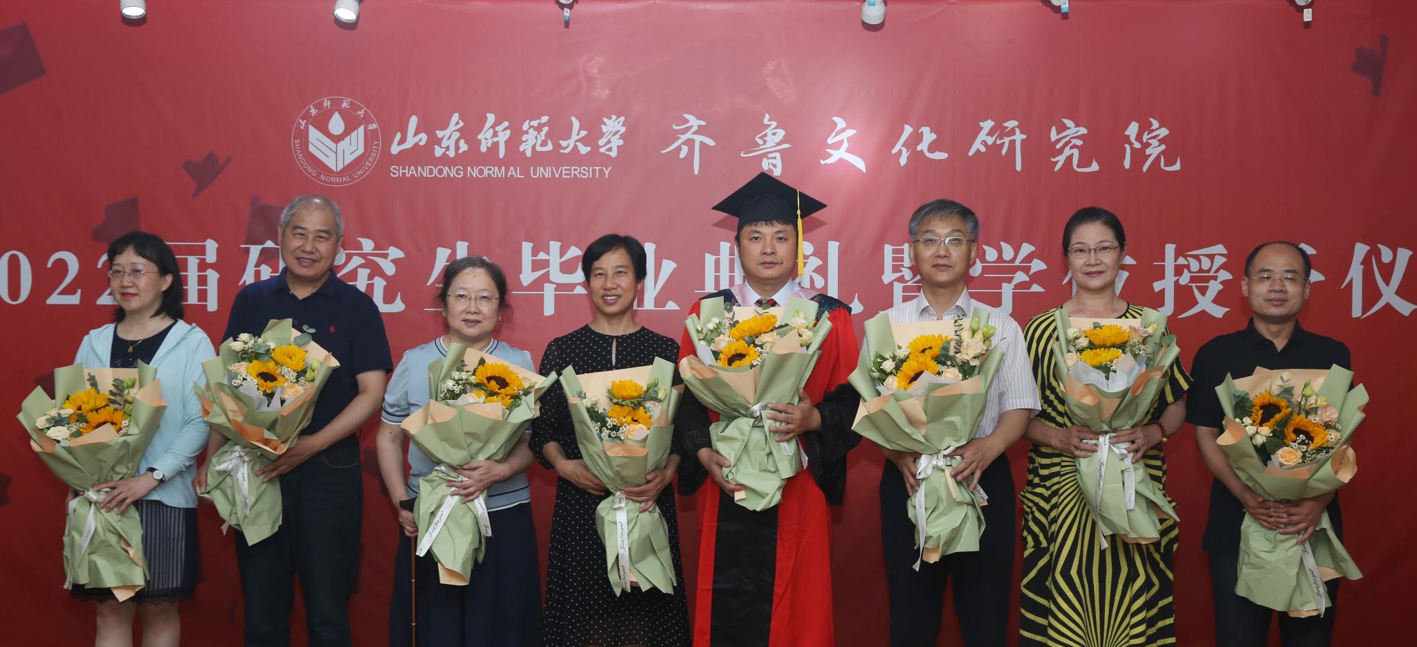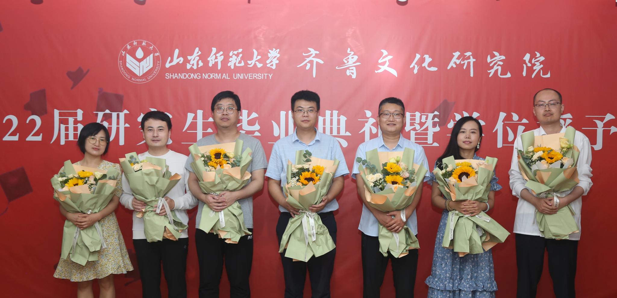 6月15日上午,齐鲁文化研究院2022届研究生毕业典礼暨学位授予仪式在逸夫楼106报告厅隆重举行。直属单位党委书记胡桂香,直属单位党委副书记、齐鲁文化研究院副院长颜春杰,齐鲁文化研究院副院长、博士生导师吕文明教授以及研究生院全体师生参加了活动,典礼由齐鲁文化研究院学工办主任、团委书记李莉主持。