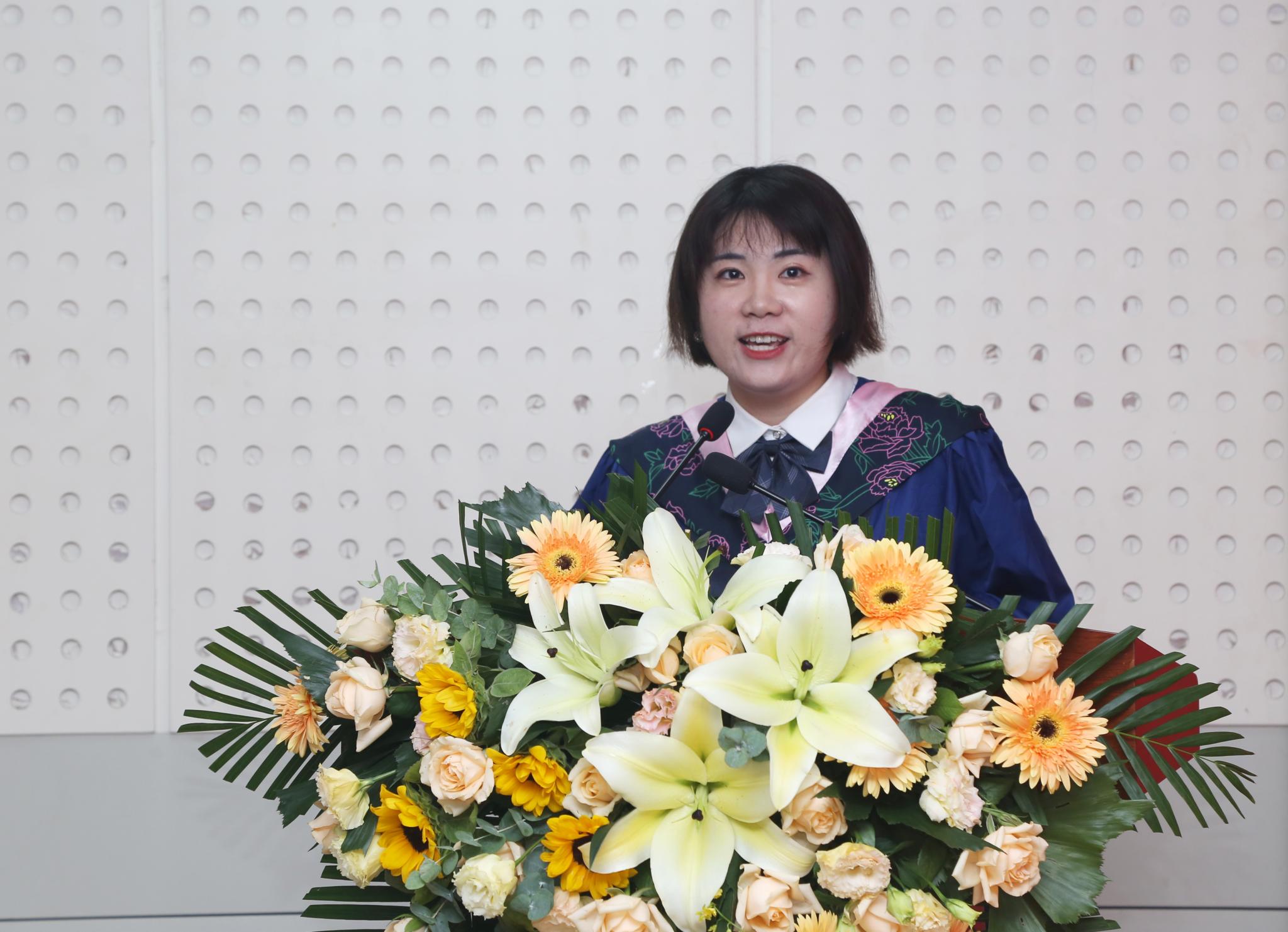 在校生代表罗琳同学向师哥师姐们送上了美好祝福,祝福他们用自身的努力去实践各自的梦想。毕业生代表芦娜同学代表全体毕业生对研究院老师们的悉心培养表示感谢,回顾了大家一同度过的三年的研究生时光,表达了对未来的期许,不负青年之心中赤诚热爱,不负父母师长之殷殷期盼,更不负身处之伟大时代。