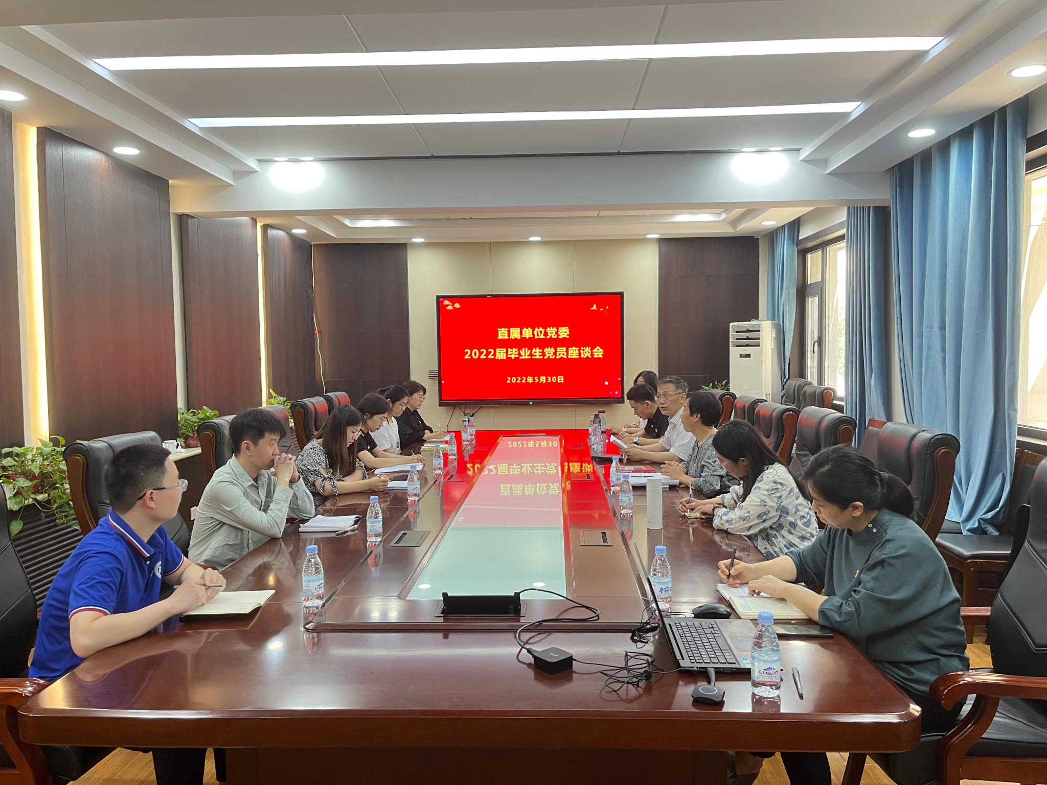 为加强毕业生党员教育,做好2022届毕业生党员离校教育管理相关工作,5月30日下午,直属单位党委在千佛山校区逸夫楼齐鲁文化研究院211会议室举行毕业生党员座谈会。直属单位党委书记胡桂香,齐鲁文化研究院团委书记、学生党支部书记李莉、图书馆学生党支部书记宋丹阳和毕业生党员参加了活动。直属单位党委副书记、齐鲁文化研究院副院长颜春杰主持座谈会。