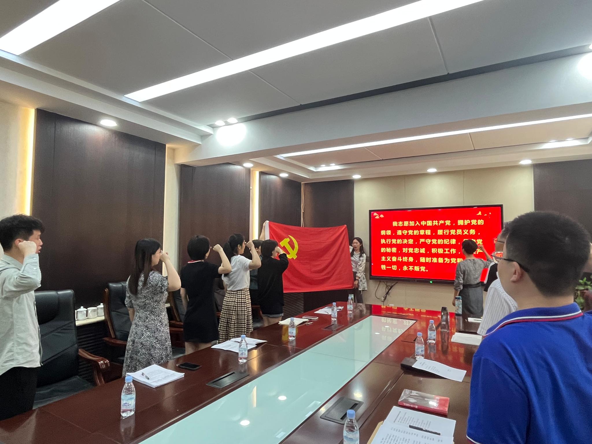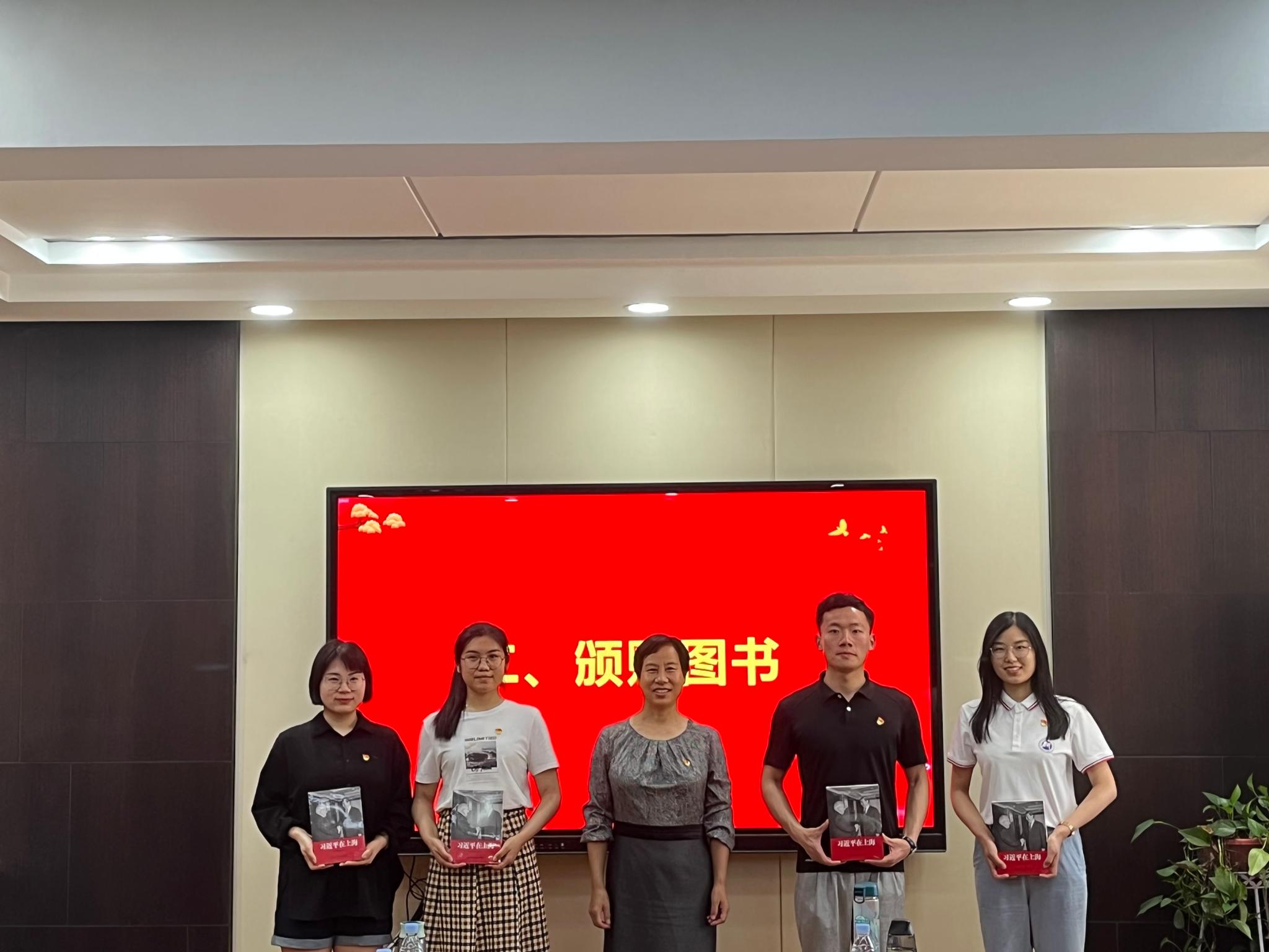 胡桂香带领全体毕业生党员重温入党誓词,每一位党员面对鲜红的党旗,庄严宣誓,提醒自己要坚定理想信念,牢记神圣使命。随后,胡桂香为毕业生党员赠送书籍《习近平在上海》。