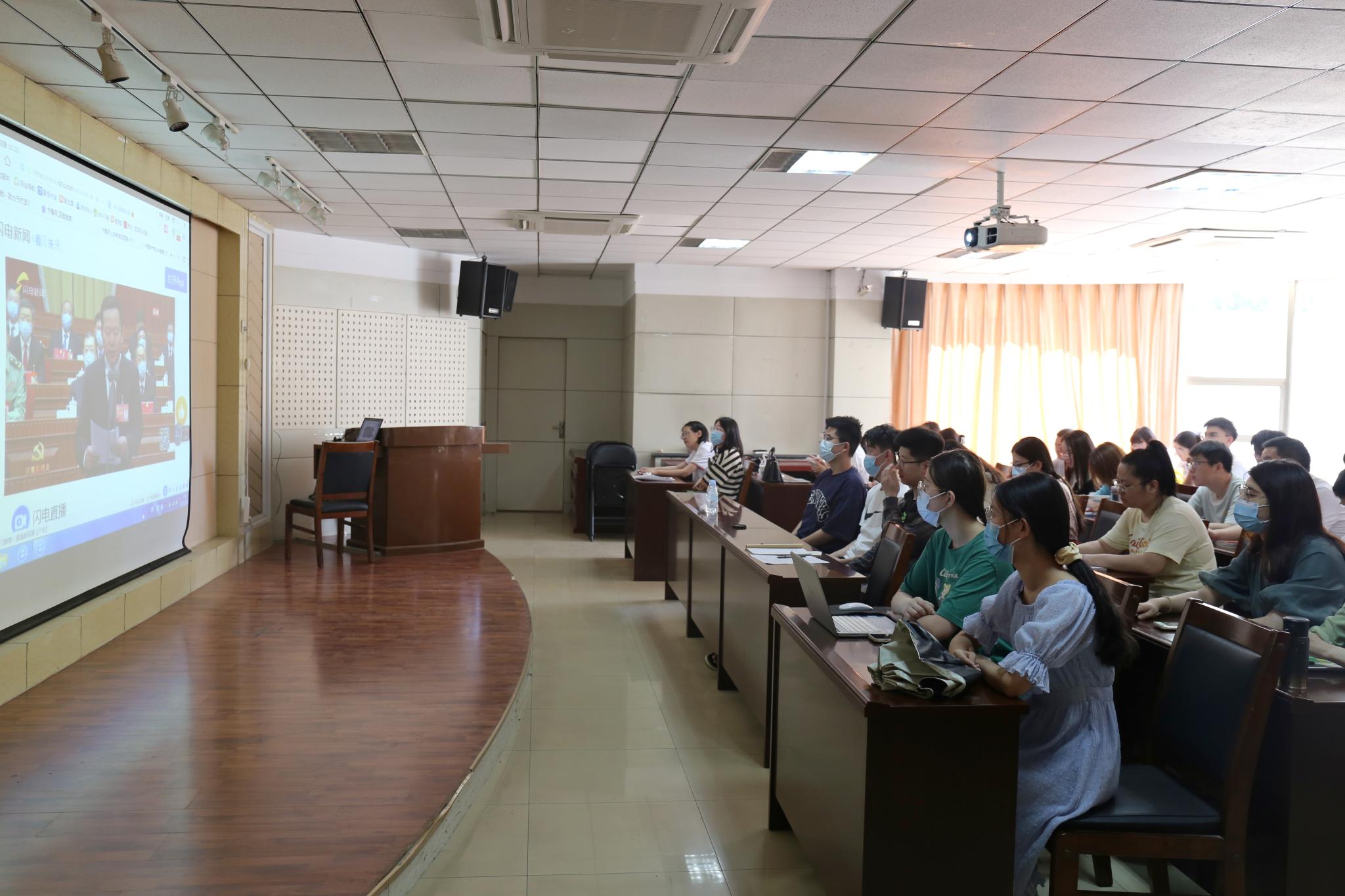 5月28日上午,中国共产党山东省第十二次代表大会在济南隆重召开。齐鲁文化研究院学工办主任、团委书记李莉等与全体学生党员、入党积极分子一起在逸夫楼106报告厅收看大会直播。
