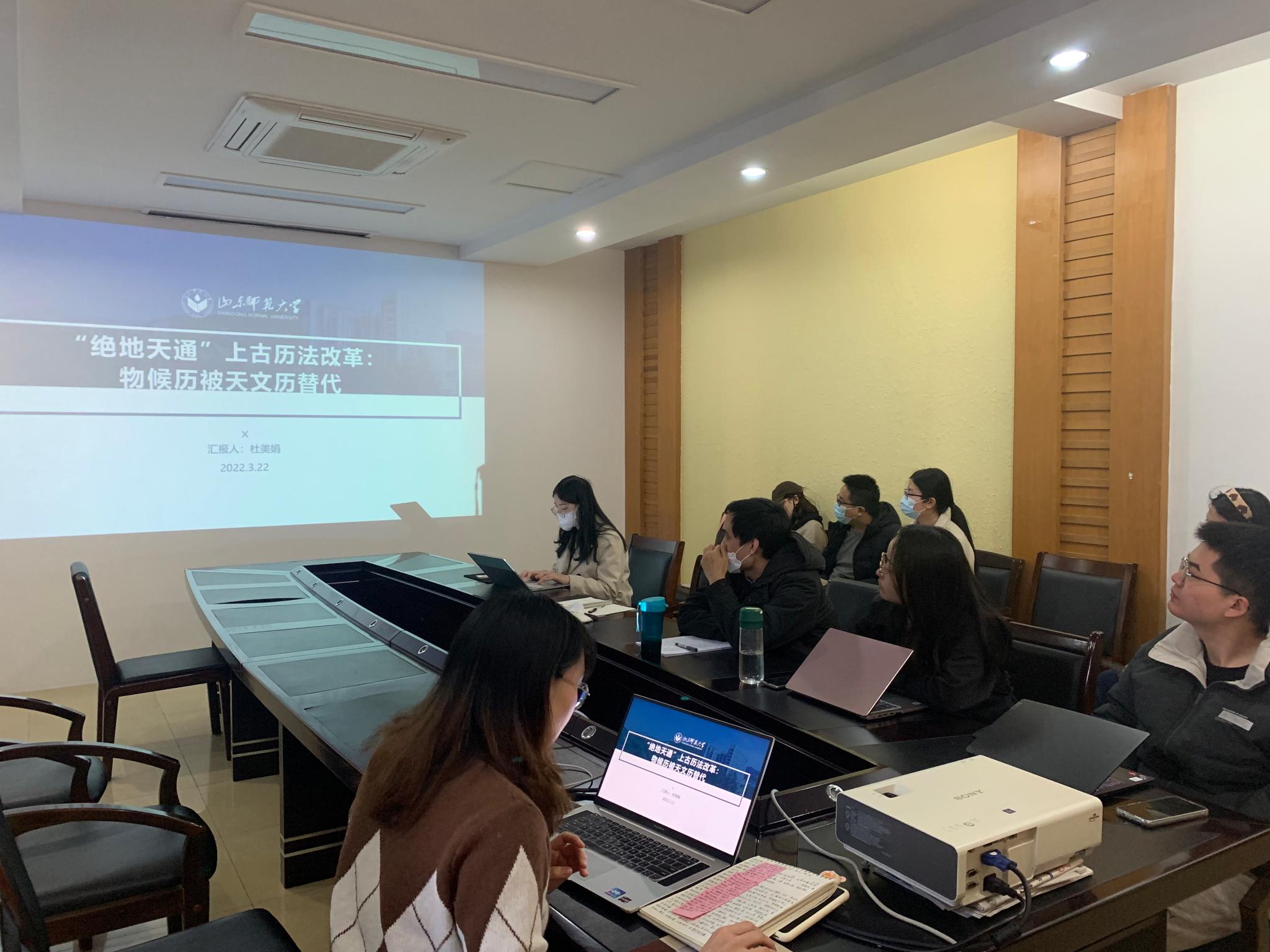 杜美娟同学做了《“绝地天通”上古历法改革:物候历被天文历代替》的学术报告。她用上古历法演变的视角重新解读重、黎“绝地天通”一事,认为“绝地天通”反映了上古时期一次重要的历法改革,完成了由少皞时代物候历向颛顼以后天文历的转变。
