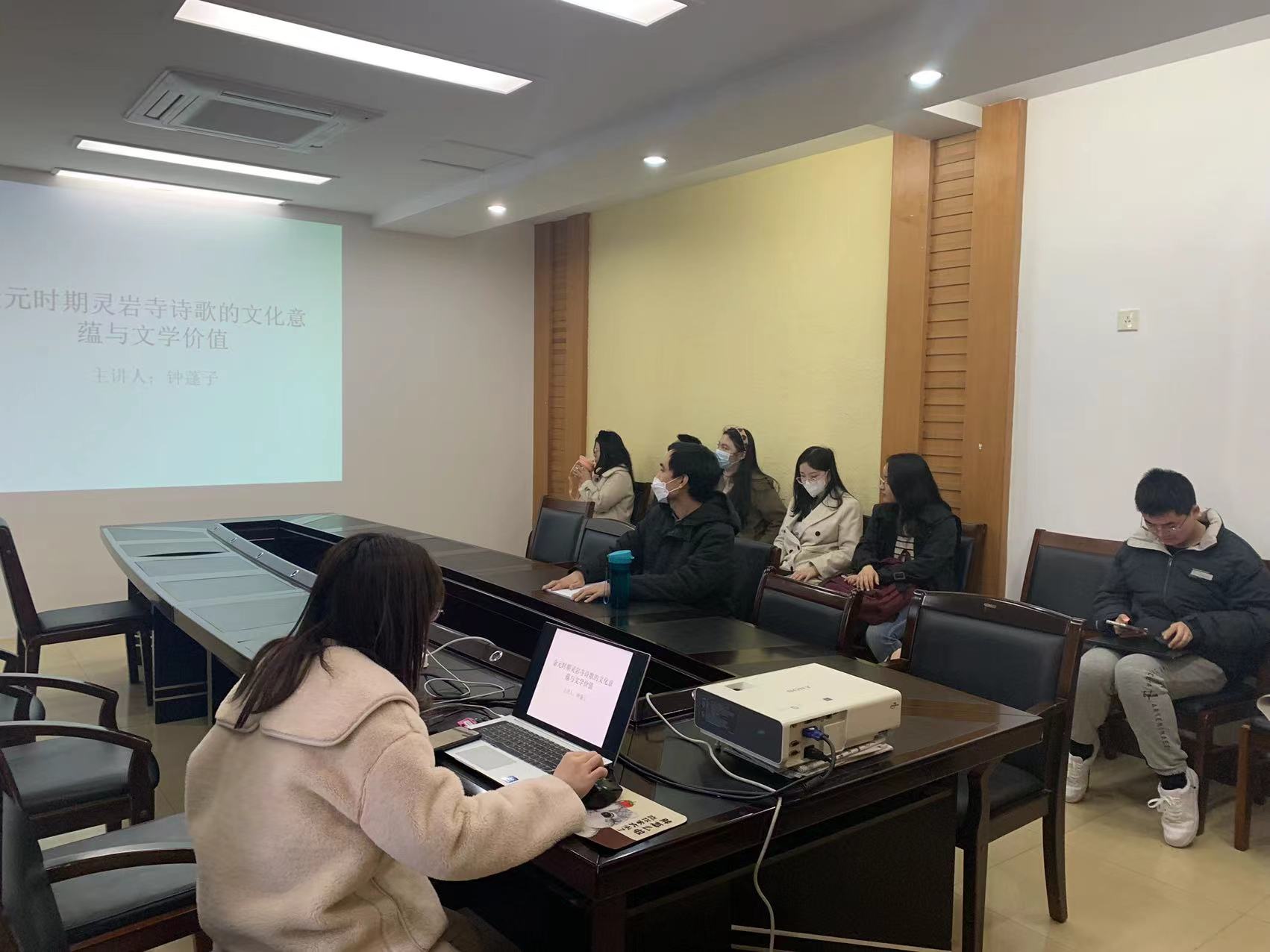 钟蓬子同学的学术报告题目是《金元时期泰山灵岩寺诗歌文化意蕴与文学价值》。她简要介绍了金元时期泰山灵岩寺诗歌的丰富内容,并进一步分析了诗歌中儒释文化、民族文化的互动情况,揭示出灵岩寺诗歌丰厚的文化意蕴,拓展了灵岩寺诗歌的创作空间。