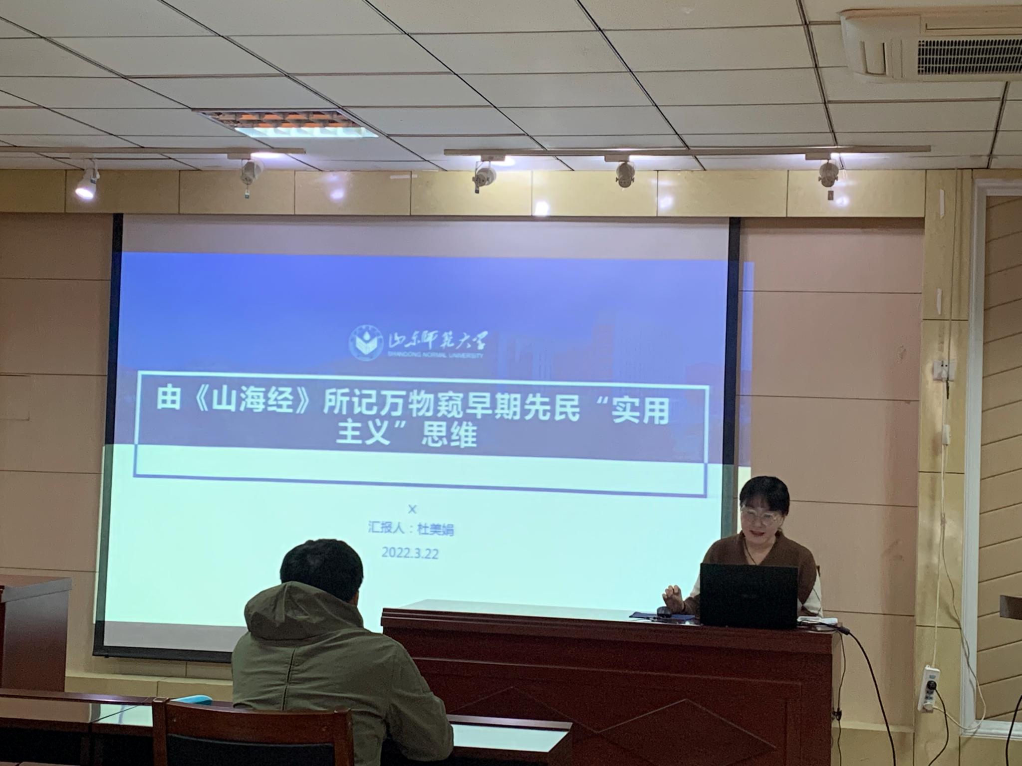 杜美娟同学的学术报告以《由<山海经>所记万物窥早期先民“实用主义”思维》为题,认为《山海经》详细记述了数百座山的方位、道里、所出河流以及这些山、水所产的数百种草木鸟兽、金石矿产,是一部基于实地调查的山川博物志。她指出,经文中对世间万物外形、功效的详细记载,体现出早期先民以“实用”为目的对世界进行的探索与思考。