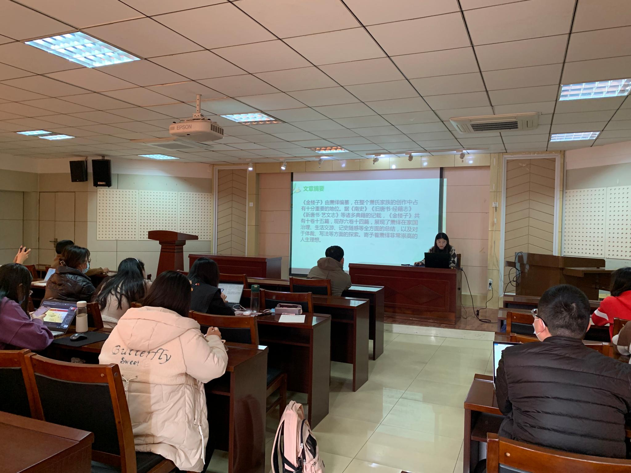 闫璐同学作了题为《帝王之姿,文人之范:<金楼子>中萧绎的思索》的报告。她通过对《金楼子》一书中《立言》《戒子》《箴戒》等篇目的分析,考察萧绎在立功、立事、立言三方面的不同行为。