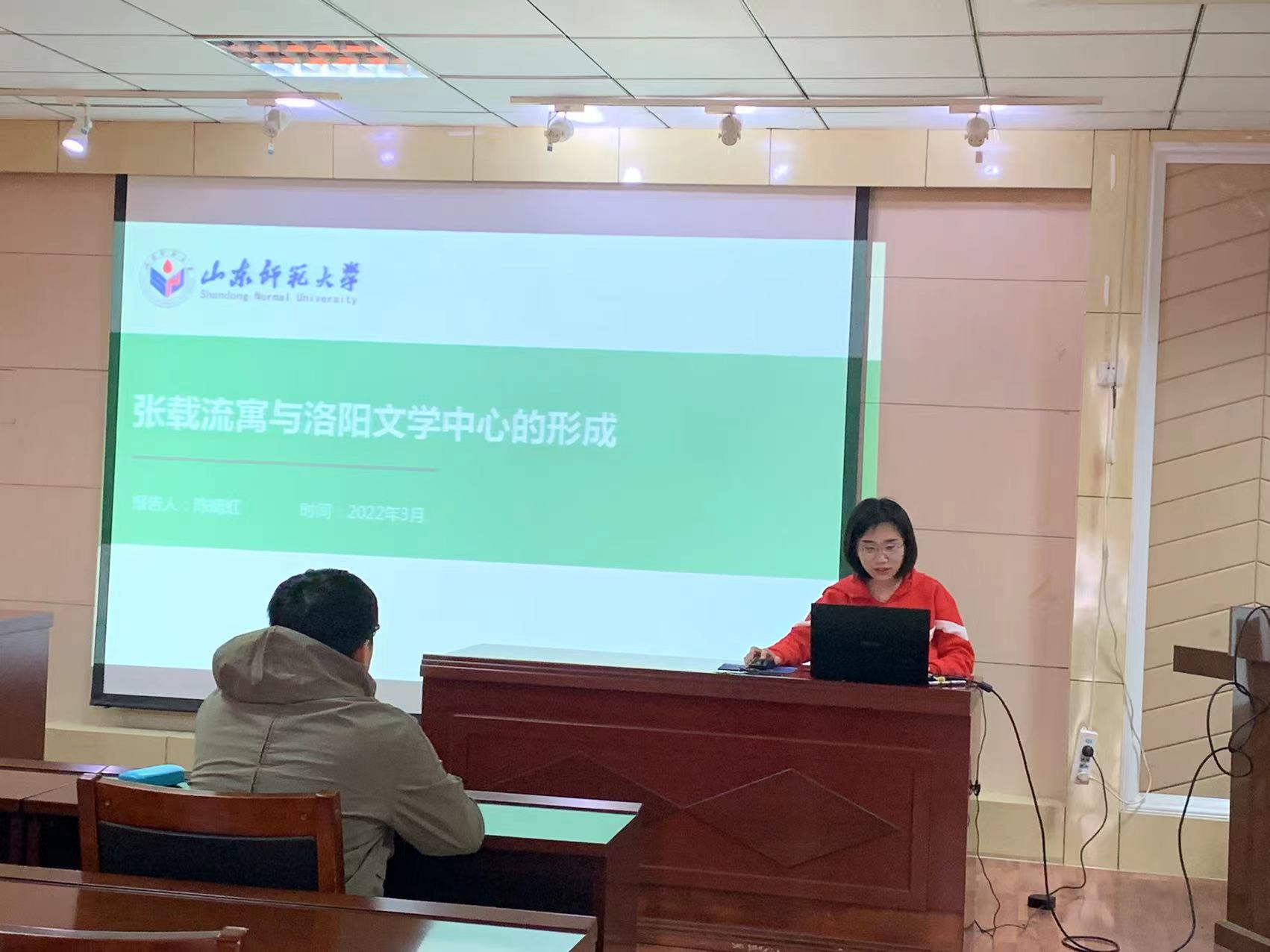 陈嫣虹同学的学术报告题目是《张载流寓与洛阳文学创作》。她通过考察张载南下蜀地、返归洛阳、与洛阳文士交往等人生经历,论述了张载文学创作风格的变化,及对洛阳文坛追求华美技巧的突破。