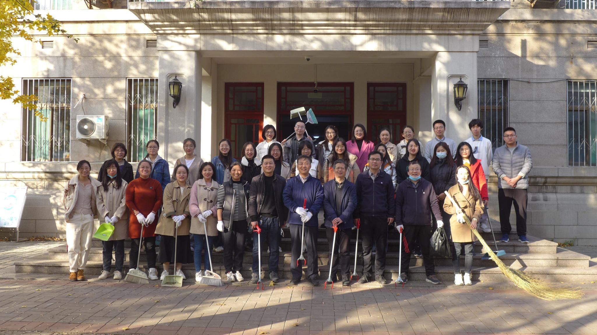 活动结束后,参与活动的师生一同合影留念。谈起此次活动,博士党员刘泽琳表示:“这次志愿者活动使我们体会到了集体的力量、集体的温暖,也让我亲自体会到了劳动的光荣感。”预备党员职伟表示:“这次义务劳动,是我们为全校师生服务的一次良好机会。我不仅感受到了服务与奉献的快乐,同时还对导师的教导有了深刻的体悟,‘校书如扫落叶,一面扫一面落’,做学问要精益求精。”入党积极分子王国凤表示:“我们扫除的不仅是落叶和垃圾,更是为文明校园奉献的一份微薄之力。老师们不怕脏不怕累,为我们树立了榜样。本次志愿劳动是一针助力剂,在今后的生活中我们也将继续尽己所能,服务他人与社会。”