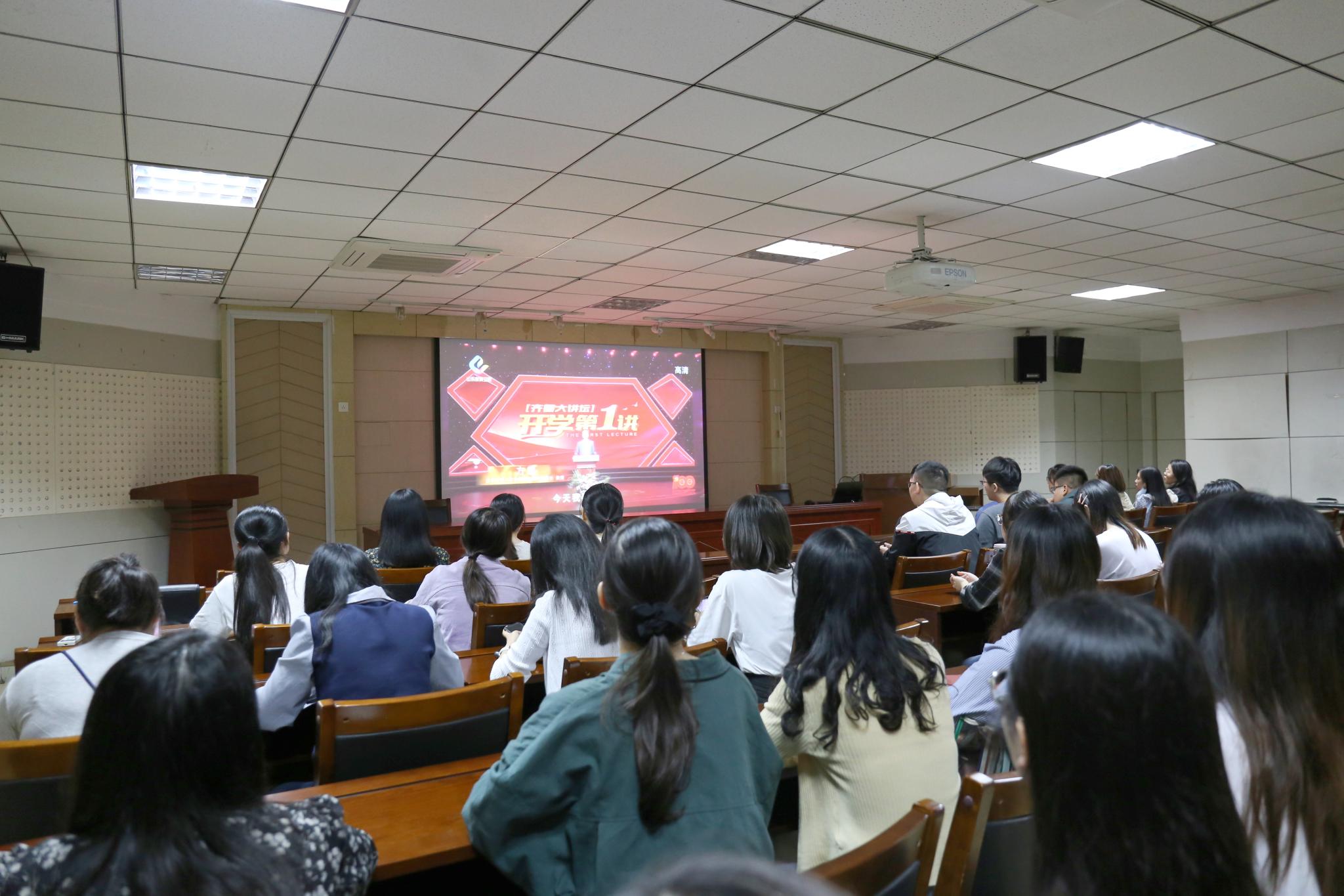 9月29日,齐鲁文化研究院组织全体共青团员在逸夫楼106报告厅观看了《齐鲁大讲坛——开学第一讲》。