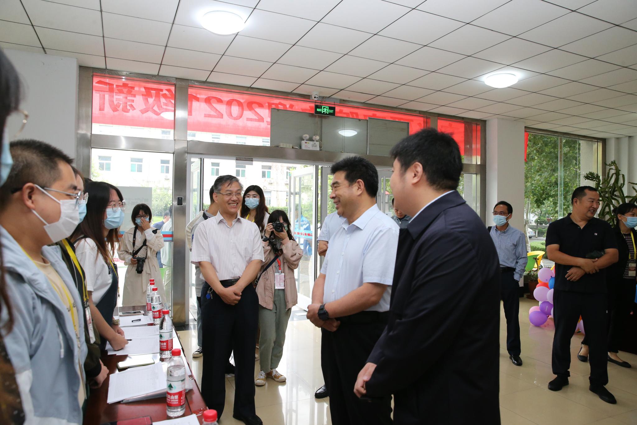 9月5日上午,山东师范大学校长曾庆良、纪委书记周婧、副校长许双庆等学校领导一行到逸夫楼迎新现场检查研究院新生入学报到情况,看望前来报到的新生,慰问迎新志愿者。曾校长亲切地询问新生们的情况,勉励同学们努力学习,专心科研,多出成果。新生们感谢校长的鼓励,激动地同校长合影留念。