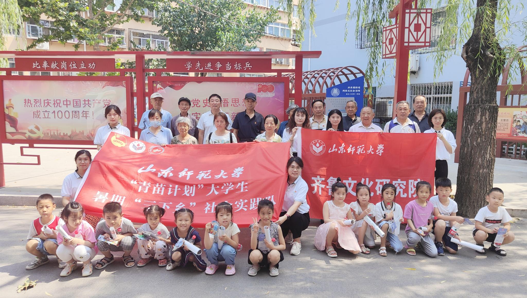 为深化“学党史、强信念、跟党走”主题教育,将四史学习落实到实践中去,7月9日,齐鲁文化研究院暑期“三下乡”社会实践队——“齐鲁红船”党史宣讲队在党团组织的指导下走进济南洪家楼街道鑫达社区,为该社区居民以及社区幼儿园小朋友们讲述了党史故事,宣传红色文化。