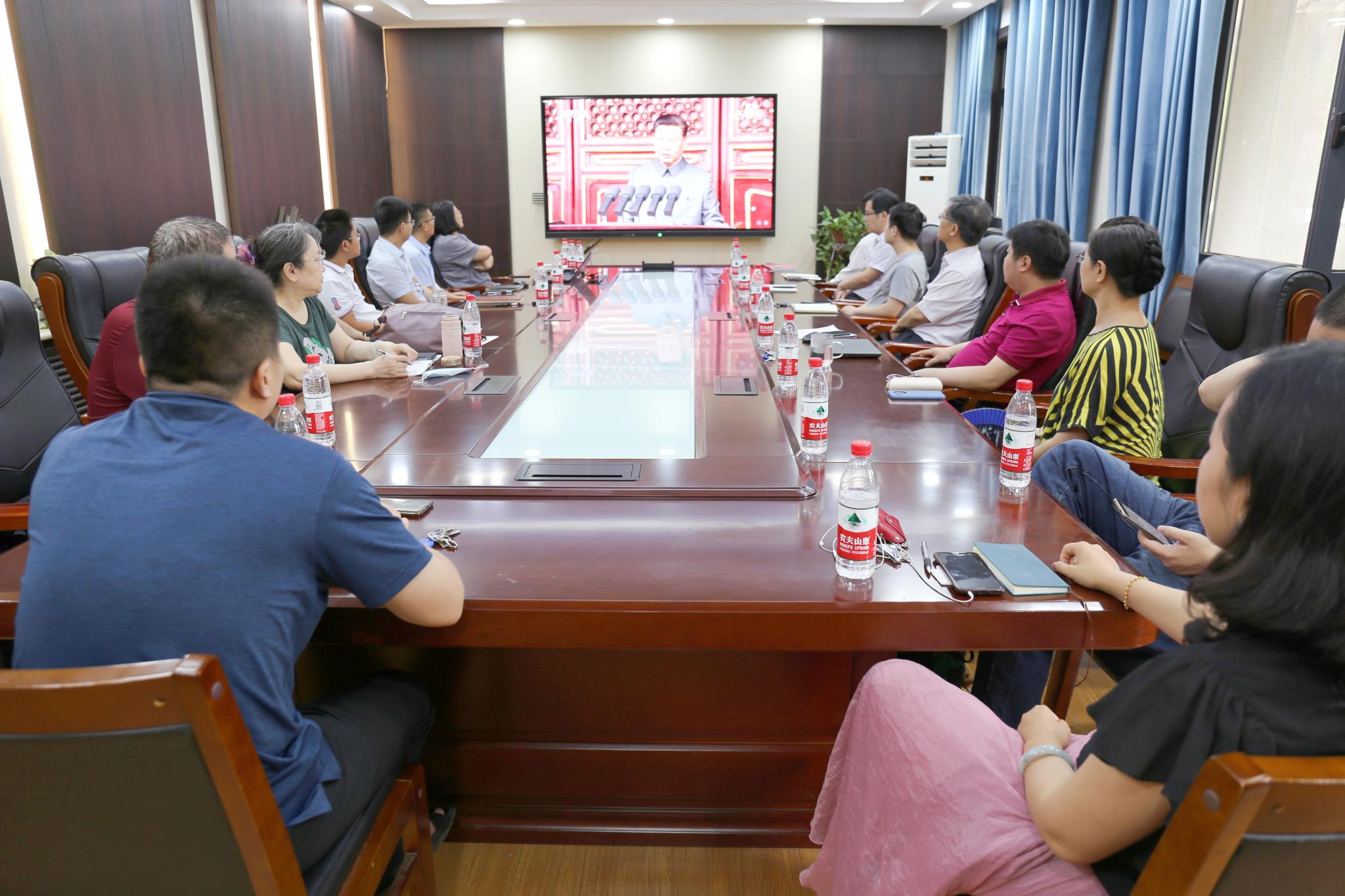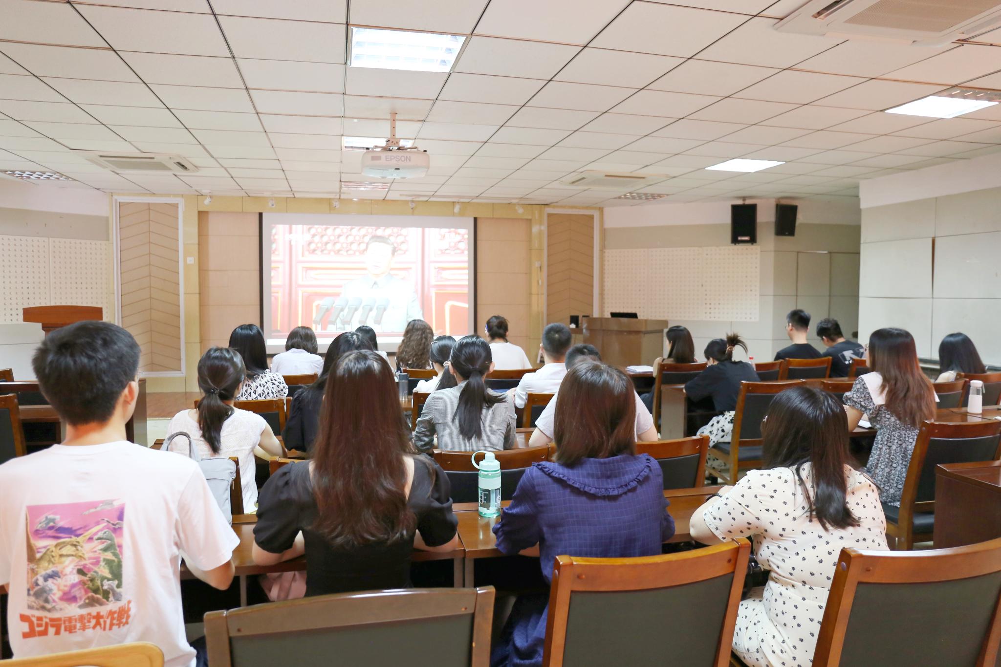 7月1日上午8时,中国共产党建党100周年庆祝大会在北京天安门隆重举办,齐鲁文化研究院组织全体教师、全体学生在逸夫楼211会议室和106报告厅观看庆祝大会现场直播。
