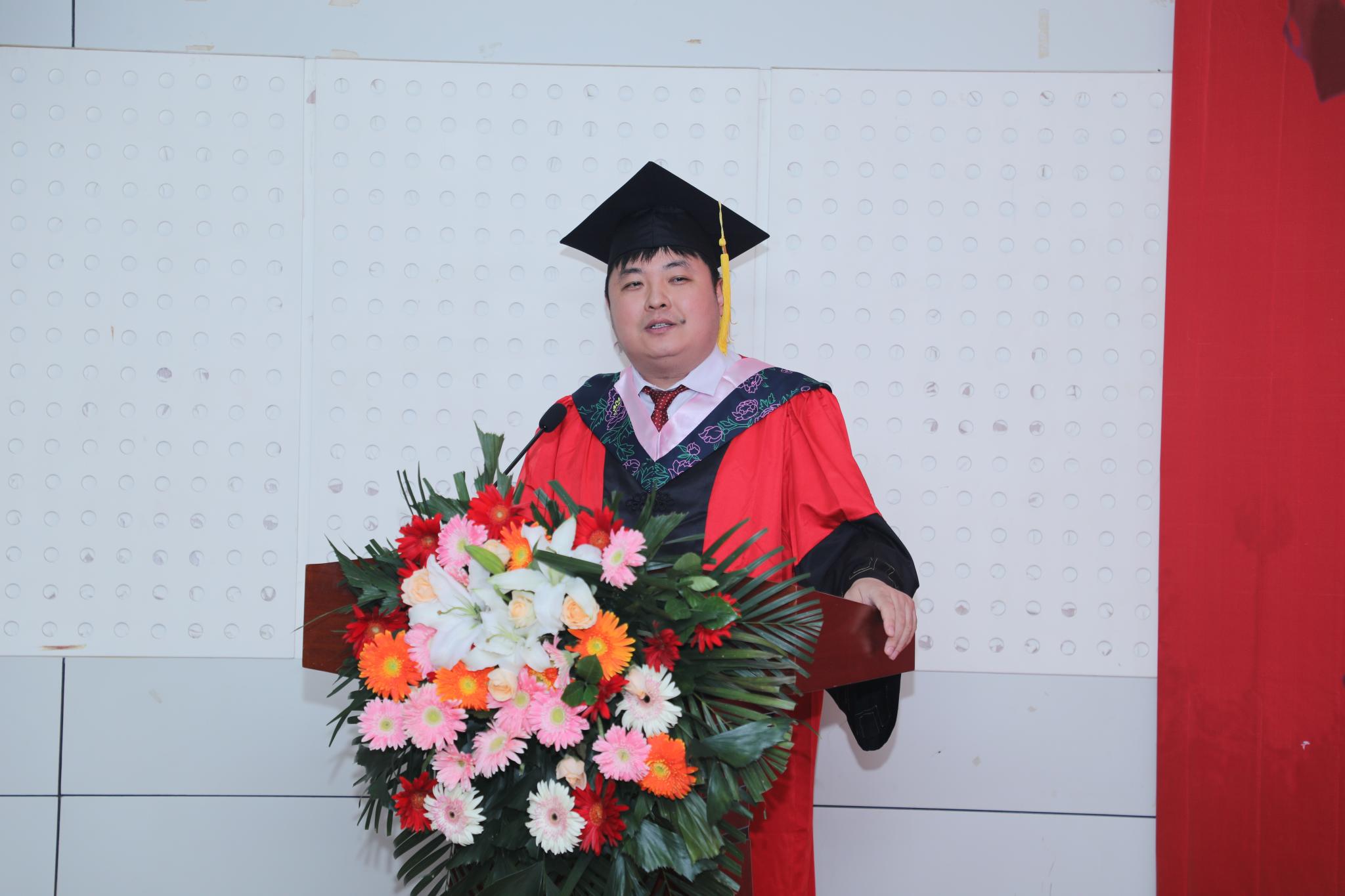 博士生导师张磊代表老师发言,他回顾了过去三年的拼搏岁月,希望毕业生们在建党百年之际能够不忘初心,永远赤诚。