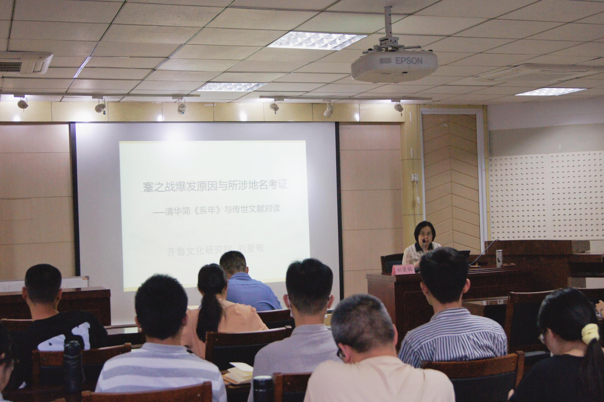 5月17日晚,由齐鲁文化研究院和研究生工作部联合举办的“治学·修身研究生学术论坛”在逸夫楼106报告厅举行。齐鲁文化研究院刘爱敏副教授作了题为“鞌之战爆发原因与所涉地名考证——清华简《系年》与传世文献对读”的学术报告。报告会由院长助理代生副教授主持,研究院张磊、常红星副教授等40余名师生聆听了报告。