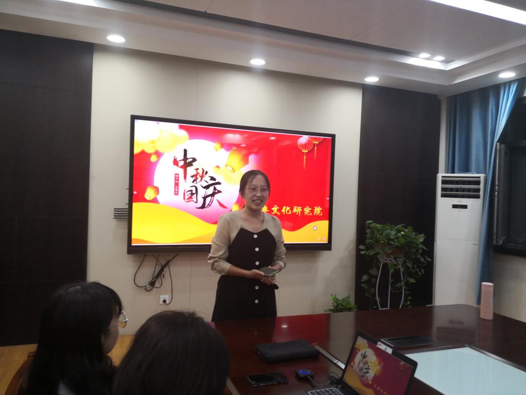 10月1日晚,研究生会院于中秋节晚上为同学们组织了一场精彩的中秋晚会,此次晚会由2020级研究生王国凤主持,在全体研究生齐唱《我和我的祖国》中拉开帷幕,同学们都准备了精彩的节目,敞开心扉,欢度国庆与中秋,整场晚会充满了欢声笑语,最后在全体学生学唱校歌《山东师范大学校歌》中圆满落幕。