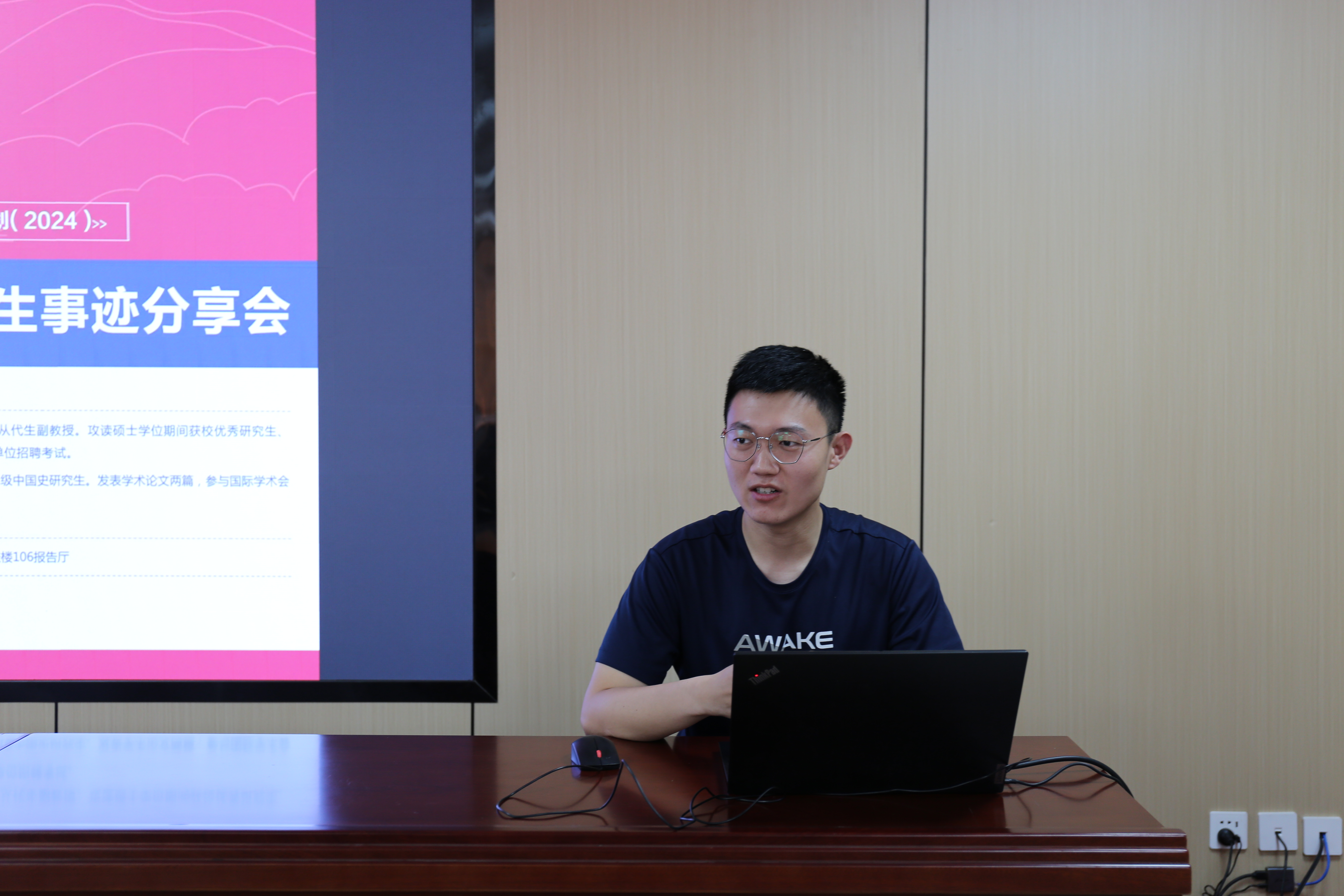 6月5日下午,由齐鲁文化研究院研究生会、德廉学社主办的“优秀毕业研究生事迹第九期分享会”在逸夫楼106举行, 分享会邀请了2021级毕业生张龙、叶欣怡作经验分享。2022、2023级全体研究生参加了会议,分享会由齐鲁文化研究院学工办主任、团总支书记杜云飞老师主持。