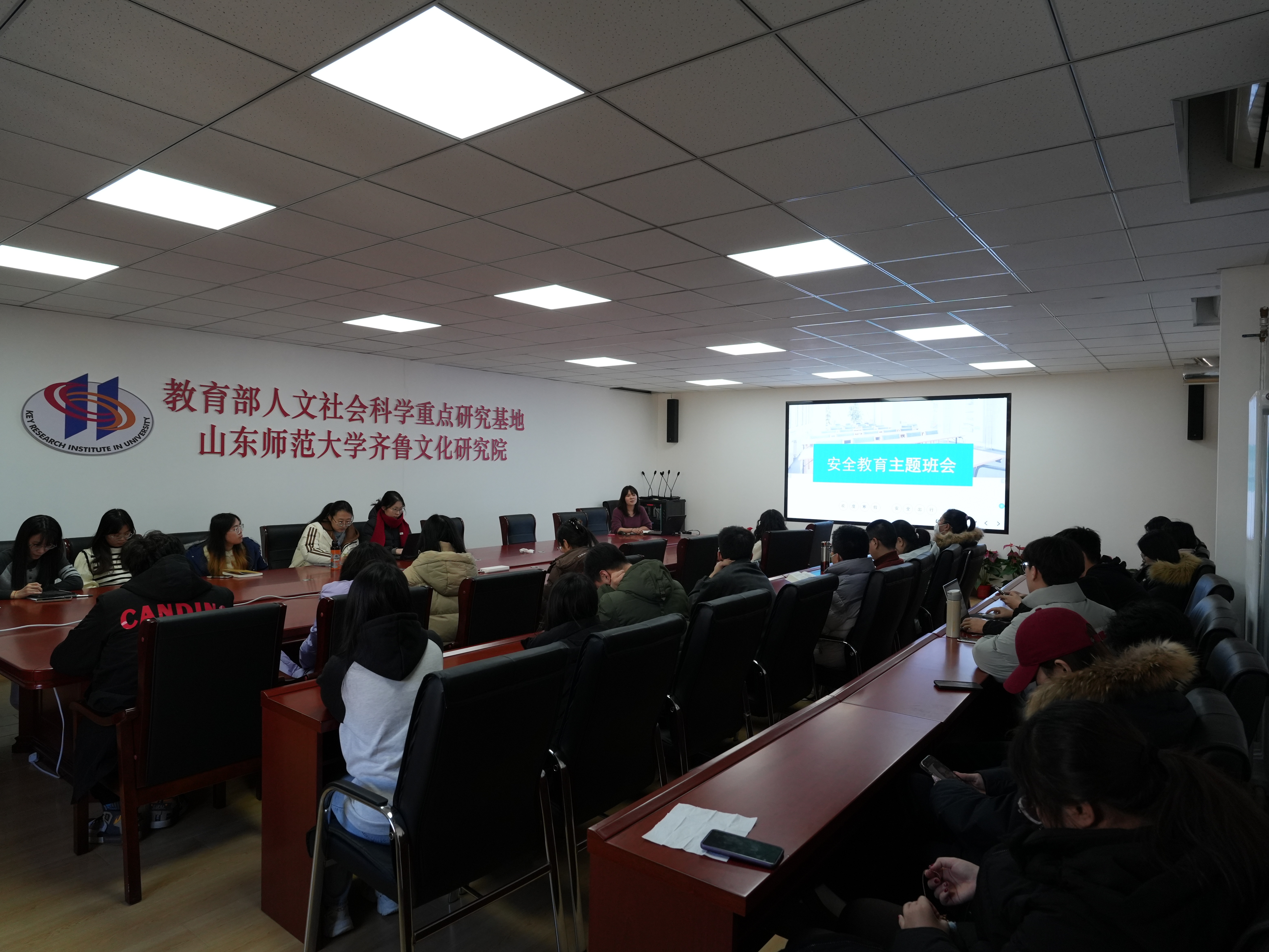 2025年1月9日下午,齐鲁文化研究院在逸夫楼413会议室召开了期末年级会暨安全教育主题班会,会议由研究院团总支书记杜云飞主持,研究院全体学生参加。会上强调,寒假期间,同学们将离开校园返回家乡,但安全意识不能放松,要求学生在离校前务必检查宿舍与自习室,以防止意外事故发生。同时,她还重点强调寒假期间的个人安全、出行安全等问题,提醒同学们要时刻保持警惕,确保自身安全。
