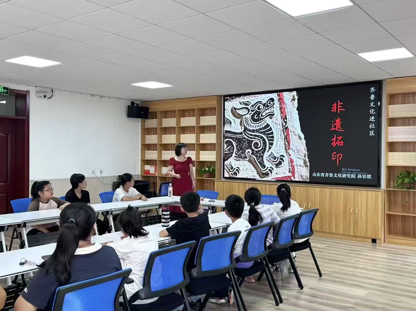 8月2日,齐鲁文化研究院团总支“齐鲁·青年说”实践队走进东营市垦利街道井下北社区,此次由2024级硕士研究生孙安琪担任主讲人,为社区的小朋友们带来了一场别开生面的传拓文化宣讲,让孩子们近距离感受这项古老技艺的独特魅力。