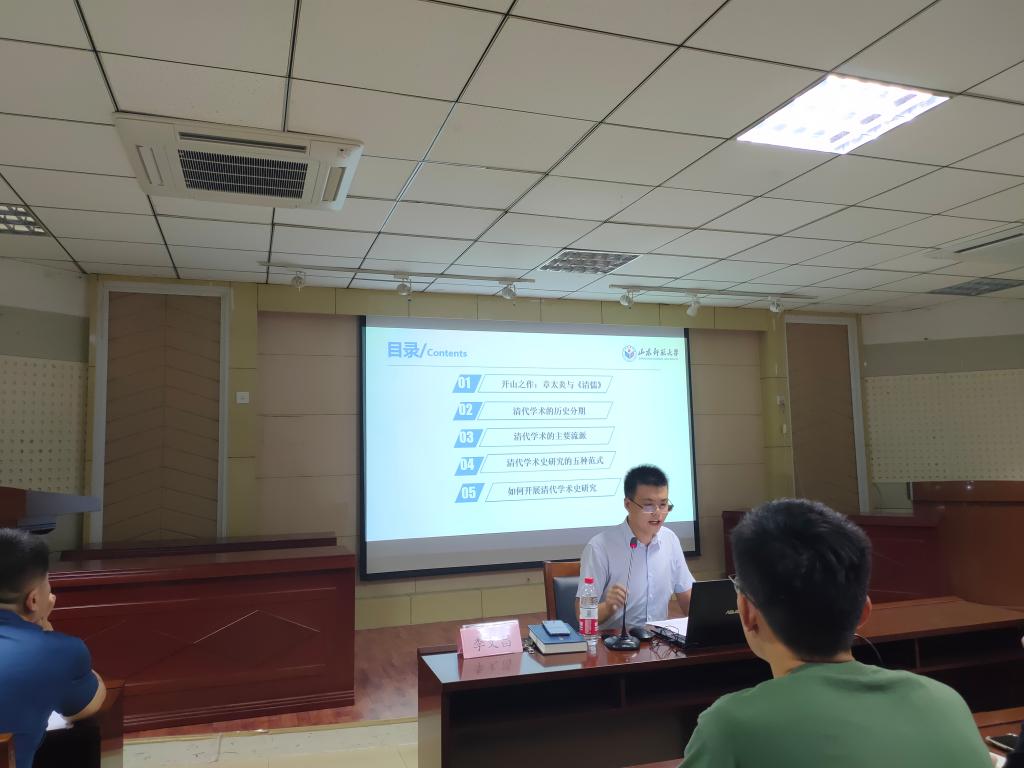 9月20日晚,由山东省齐鲁文化研究院与研究生工作部联合举办的“治学·修身研究生学术论坛”在千佛山校区逸夫楼106报告厅开讲。齐鲁文化研究院新进教师李文昌博士作了题为“清代文学史的开山之作——兼谈清代学术史研究的几个基本问题”的学术报告。报告会由研究院院长助理代生主持,研究院师生50余人聆听了此次讲座。