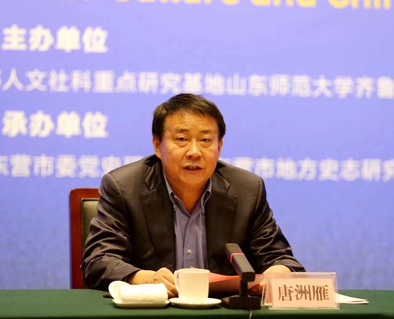4月21日至22日,世界入海口城市合作发展大会分论坛——黄河文化与中华文明国际论坛在山东东营隆重举办。论坛由山东师范大学、东营市人民政府、教育部人文社会科学重点研究基地山东师范大学齐鲁文化研究院主办,东营市人民政府外事办公室、中共东营市委党史研究院承办。来自海内外高校和科研机构的80余位学者出席会议。山东省政协党组成员、山东省社科联主席唐洲雁,山东省政协原副主席、山东师范大学特聘资深教授王志民,山东师范大学校长曾庆良,中华书局执行董事、党委书记周绚隆,山东省委外办副主任林海滨,东营市人民政府副市长王秀凤等领导出席开幕式。开幕式由山东师范大学党委常委、副校长万光侠主持。