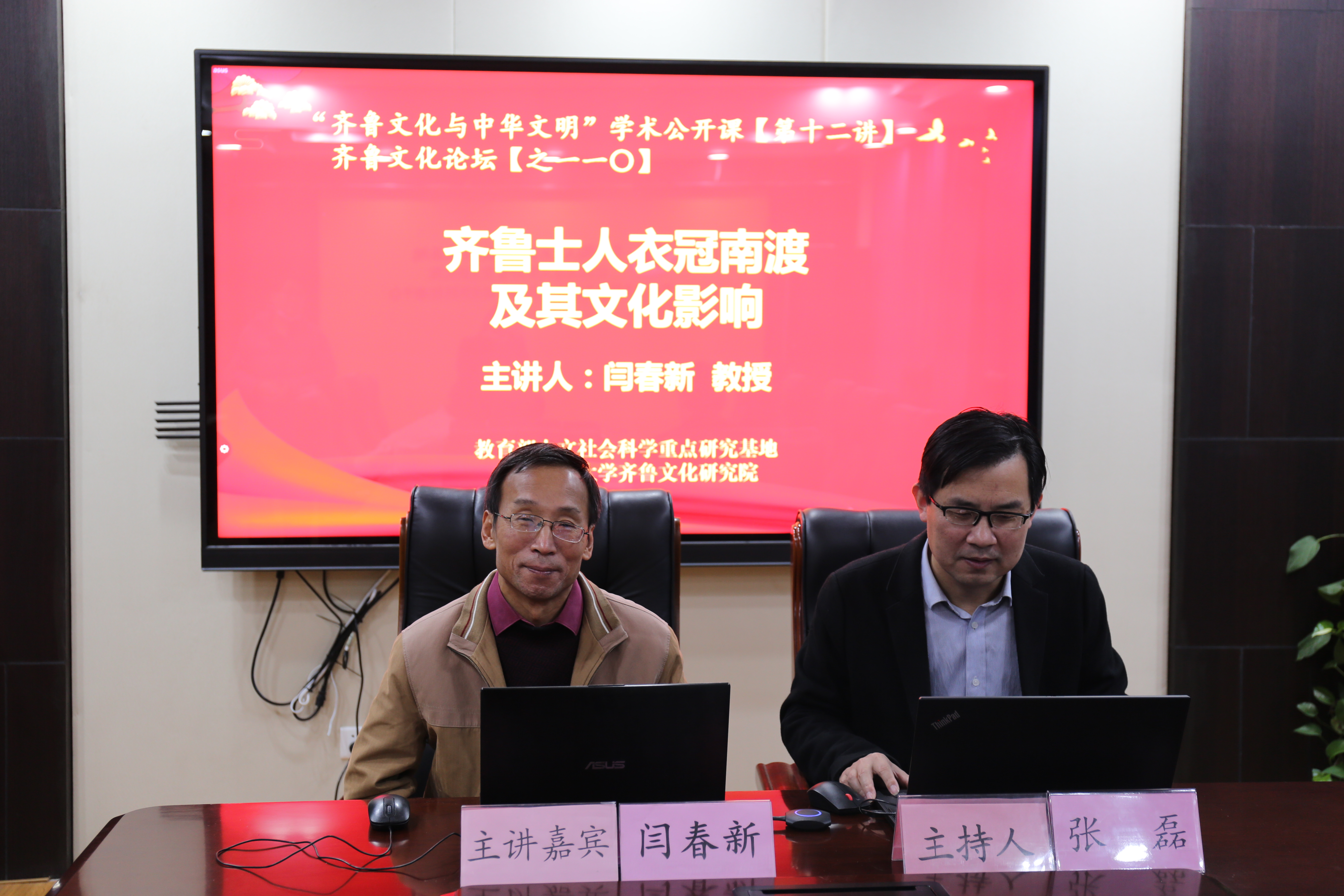 12月1日晚,由教育部人文社会科学重点研究基地山东师范大学齐鲁文化研究院主办的“齐鲁文化与中华文明”学术公开课第十二讲,以线上与线下相结合的方式举行。本次公开课由齐鲁文化研究院教授、尼山学者闫春新担任主讲嘉宾,题目是《齐鲁士人衣冠南渡及其文化影响》。山东师范大学齐鲁文化研究院全体研究生、千佛山校区部分研究生及部分线上听众,参加了此次公开课。本次报告由齐鲁文化研究院副院长、博士生导师张磊教授主持。