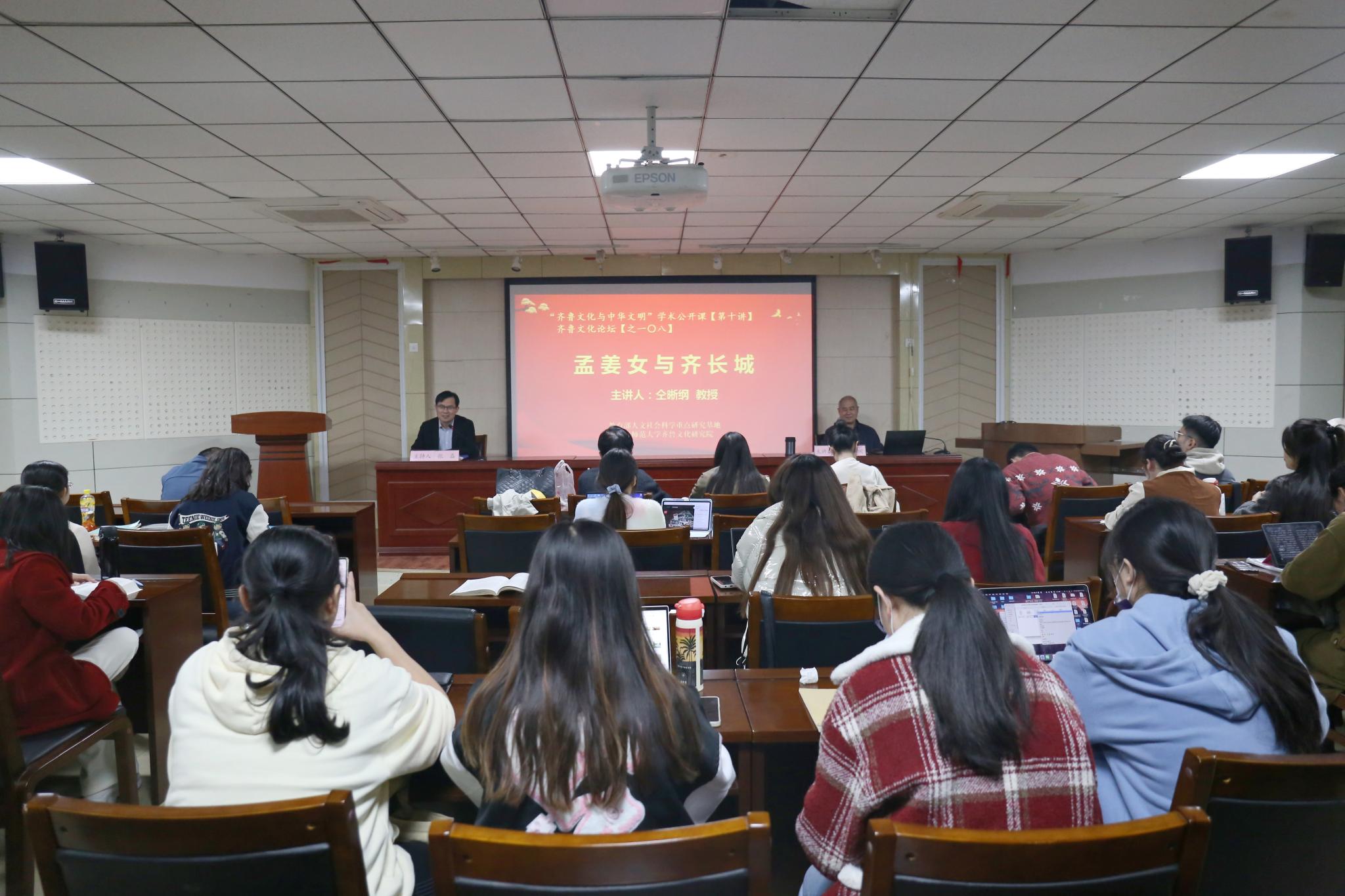 11月10日晚,由教育部人文社会科学重点研究基地山东师范大学齐鲁文化研究院主办的“齐鲁文化与中华文明”学术公开课第十讲,在山东师范大学千佛山校区逸夫楼报告厅举行。本次公开课由齐鲁文化研究院博士生导师仝晰纲教授担任主讲嘉宾,题目是《孟姜女与齐长城》。齐鲁文化研究院部分教师、全体研究生以及千佛山校区部分研究生参加此次公开课。本次报告由齐鲁文化研究院副院长、博士生导师张磊教授主持。