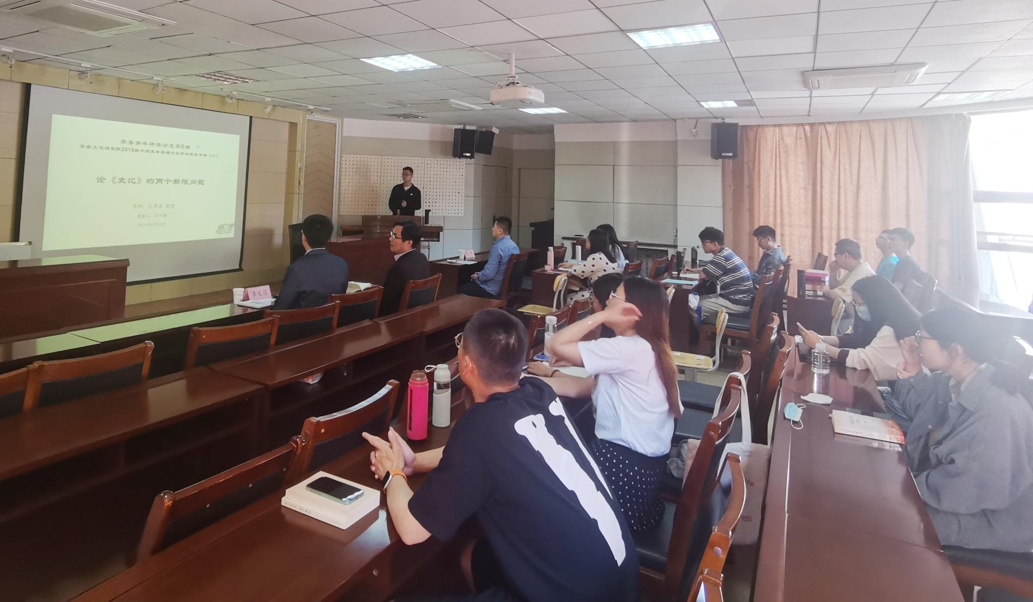 两位同学的报告内容充实,颇多创见,展现了扎实的专业功底与史学素养,得到了与会师生的一致好评报告结束后,现场同学积极提问、参与讨论,两位报告人也分别做了耐心解答。老师们分别点评两位同学的报告并提出相应改进建议。张磊在总结发言时指出,中国史专业的同学们应以弘扬中华优秀传统文化为方向,以史学研究与齐鲁文化结合为特色,努力取得更好、更多的研究成果。