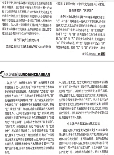 近日,齐鲁文化研究院岳音教授发表在《山东社会科学》2020年第8期的论文《先秦儒家的“艺德观”构建论析》,先后被《新华文摘》2020年19期以《先秦儒家的“艺德观”》为题作了“论点摘编”; 《中国社会科学文摘》2021年第1期以《先秦儒家“艺德观”构建》为题进行了“论点摘编” ;上海社会科学院《社会科学报》2020年12月3日第4版以《先秦儒家的“艺德观”》为题作了“论点摘编”,论文受到了学术界的充分认可与肯定。