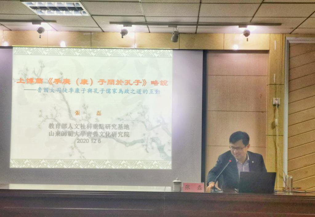 12月6日晚,由齐鲁文化研究院与研究生工作部联合举办的“治学·修身研究生学术论坛”在逸夫楼106报告厅举行。齐鲁文化研究院张磊副教授作了题为“上博简《季康子问于孔子》略说——鲁国大司徒季康子与孔子儒家为政之道的互动”的学术报告。李秀亮老师主持了本次讲座,研究院部分师生聆听了报告
