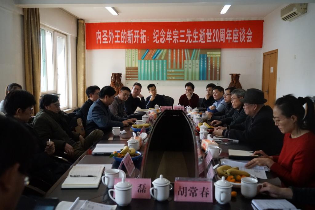 牟宗三先生是当代新儒家著名代表人物之一,他会通三教,学贯中西,无今无两,被誉为近现代中国最富有原创性的哲学家。牟宗三先生于1909年6月12日生于山东栖霞,1995年4月12日逝世于中国台北,今年是牟先生逝世20周年,为了纪念这位哲学巨擘,一代大儒,山东师范大学齐鲁文化研究院联合济南市传统文化研究会,于2016年1月14日(阴历腊月初五)下午,在齐鲁文化研究院二楼会议室,召开了“内圣外王的新拓展——纪念牟宗三先生逝世20周年座谈会”。座谈会由齐鲁文化研究院赵卫东教授主持,来自山东省社会科学院、中国孔子基金会、山东大学、山东师范大学、山东财经大学、齐鲁师范学院、曲阜师范大学、聊城大学、临沂大学等科研院所、学术机构与高等院校的20多位研究儒学的专家学者参加了座谈会,其中包括泰山学者山东大学儒学高等研究院副院长颜炳罡教授、黄玉顺教授,尼山学者山东师范大学齐鲁文化研究院程奇立教授、王钧林教授等。大家围绕“本内圣以解决新外王”、“良知自然坎陷说”以及“大陆新儒家问题”、“儒学的未来走向”等重要理论问题和学术前沿展开了深入讨论。