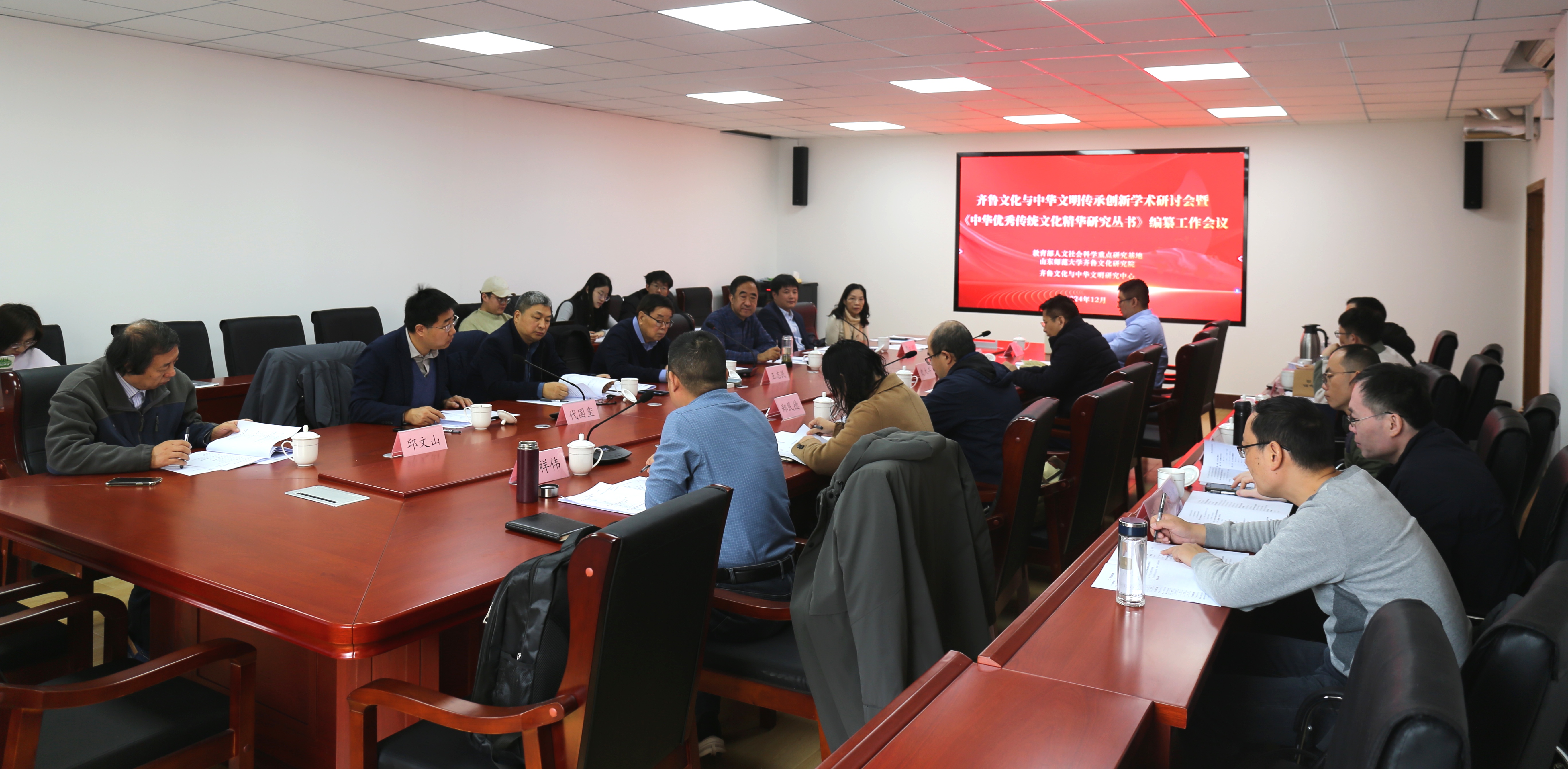 12月4日,由教育部人文社会科学重点研究基地山东师范大学齐鲁文化研究院、齐鲁文化与中华文明研究中心主办的齐鲁文化与中华文明传承创新学术研讨会暨《中华优秀传统文化精华研究丛书》(以下简称《丛书》)编纂工作会议在济南举行。来自山东大学、山东师范大学、曲阜师范大学、山东理工大学、山东中医药大学、聊城大学、鲁东大学、潍坊学院、枣庄学院、泰山学院等高校的20余位专家学者参加会议。山东师范大学特聘资深教授、齐鲁文化研究院名誉院长、首席专家王志民教授,齐鲁师范学院原副校长刘德增教授,山东大学儒学高等研究院王承略教授,山东大学历史学院院长代国玺教授,山东师范大学齐鲁文化研究院院长吕文明教授作为指导专家参加会议。会议由吕文明院长主持。