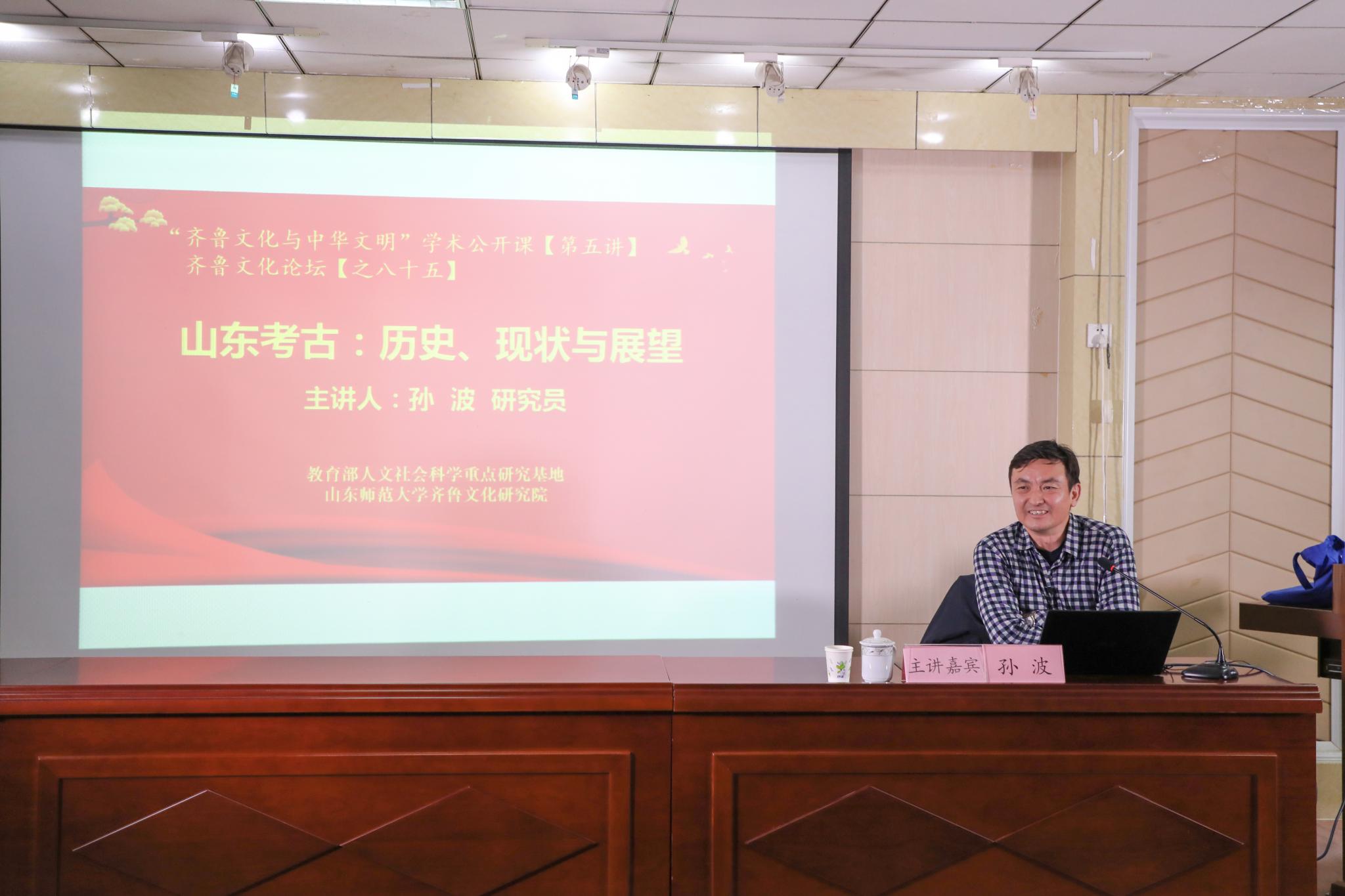 1014,由教育部人文社会科学重点研究基地山东师范大学齐鲁文化研究院主办“齐鲁文化与中华文明”学术公开课第五讲,山东师范大学千佛山校区逸夫楼报告厅举行本次公开课邀请山东省文物考古研究院院长、《海岱考古》主编、山东省考古学会秘书长孙波研究馆员担任主讲嘉宾题目是《山东考古:历史、现状与展望。齐鲁文化研究院副院长、博士生导师吕文明教授主持报告,齐鲁文化研究院全体师生、学校部分本科生参加了活动