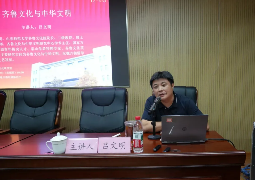 再次,吕文明教授着重讲述了齐鲁文化的具体内涵、鲜明特色和发展变迁。他指出,汉代以后,儒家思想从区域文化发展为影响全国的主流文化,齐鲁文化通过交流、碰撞、融合,影响了秦汉国家意志。因为儒家思想影响力的提升,齐鲁文化随之成为中华文明的重心。