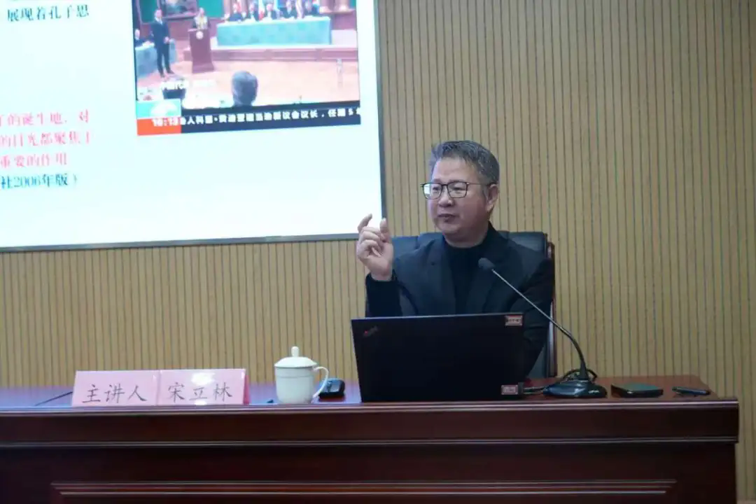 11月6日晚,由教育部人文社会科学重点研究基地山东师范大学齐鲁文化研究院主办的“齐鲁文化与中华文明”学术公开课(第五季)第六讲暨“齐鲁文化论坛”第一七二期《“三孔”文物中蕴含的中华文化精神》,在山东师范大学千佛山校区逸夫楼四楼报告厅举行。本次公开课由曲阜师范大学教授宋立林担任主讲嘉宾,齐鲁文化研究院学术副院长李文昌主持。齐鲁文化研究院师生、千佛山校区部分本科生参加了本次讲座。